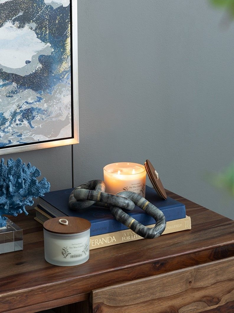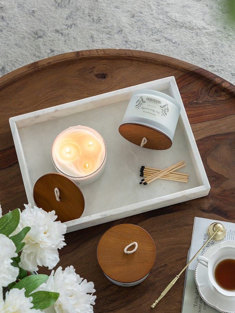 Набор свечей из соевого воска — идеальный способ добавить мягкое сияние и сладкий аромат бергамота. Соевый воск обладает полезными свойствами, биоразлагаем и не выделяет токсинов в воздух при горении.