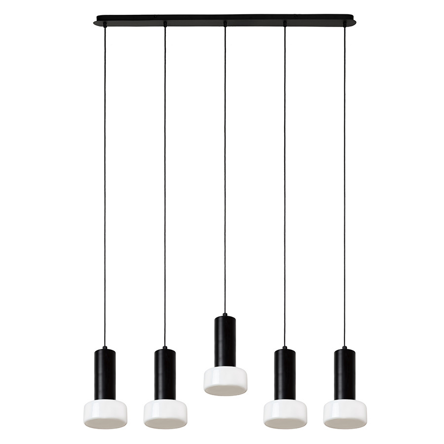 Материалы: стекло, железо. Размеры основания: 8х109,7х3 см. Диаметр основания плафона: 7,5 см. Размеры плафона: 15х15х25 см. Длина провода: 126 см. Тип цоколя: Е27. Напряжение: 220-240 В. Максимальная мощность ламп: 5х25 Вт. Площадь освещения: 8 кв.м. Степень пылевлагозащиты: IP20. Съемный плафон: нет. Лампы в комплекте: нет. Цвет: белый/черный.