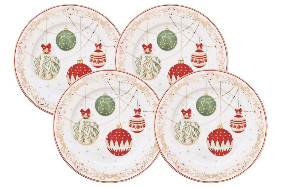 Тарелка десертная, 19 см, 4 шт, фарфор P, белая, Новогодние шары, Christmas Eve