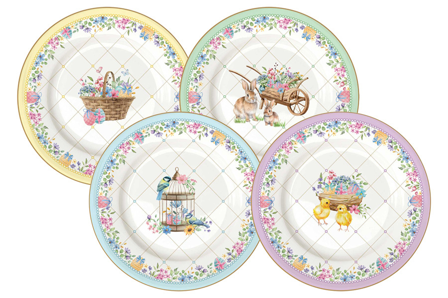 Тарелка десертная, 4 шт, 19 см, фарфор P, Микс, Кролики и цыплята, Spring Bloom