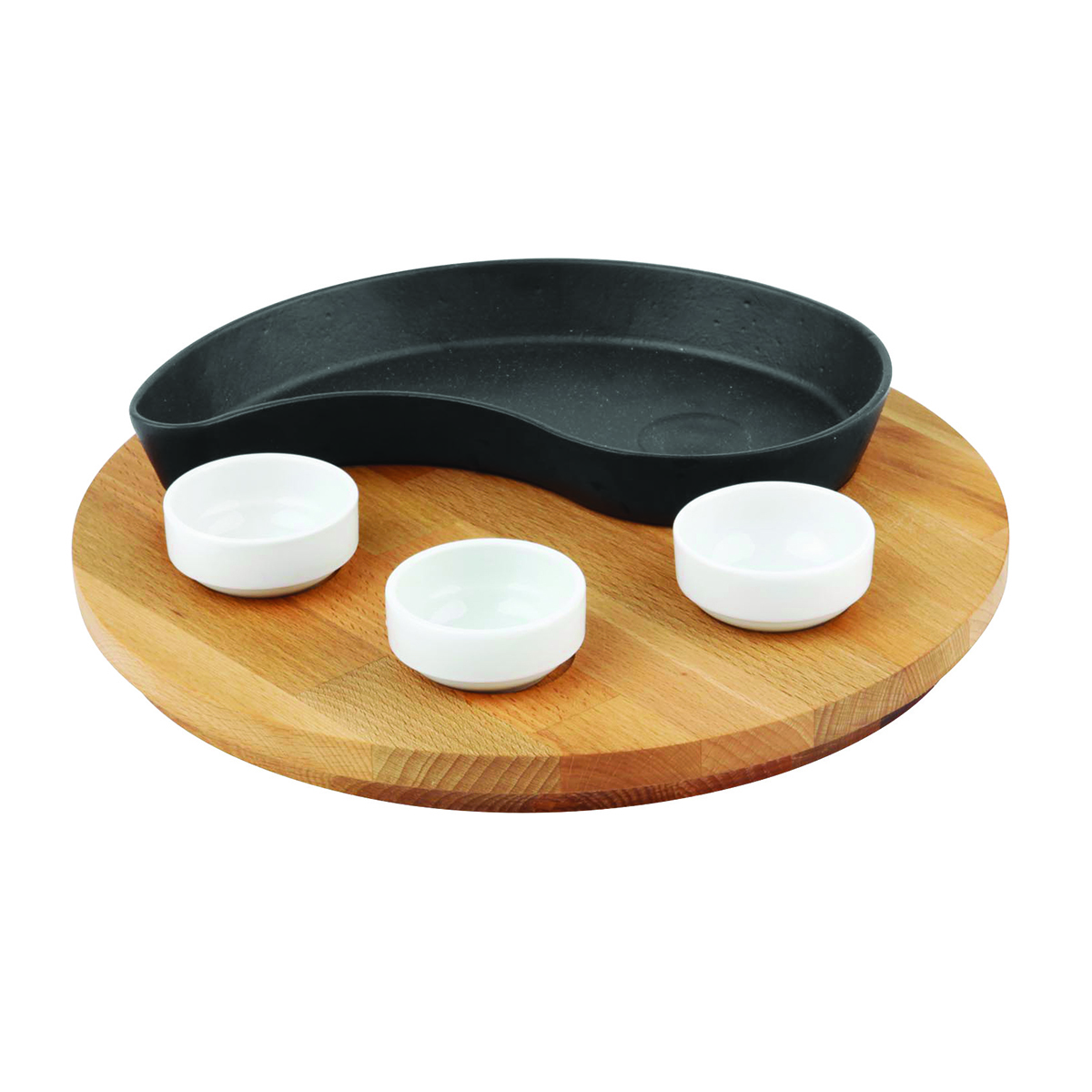 Тарелка для фахитас форма yingyang и деревянный поднос 10x20cm. (не включает соусники)