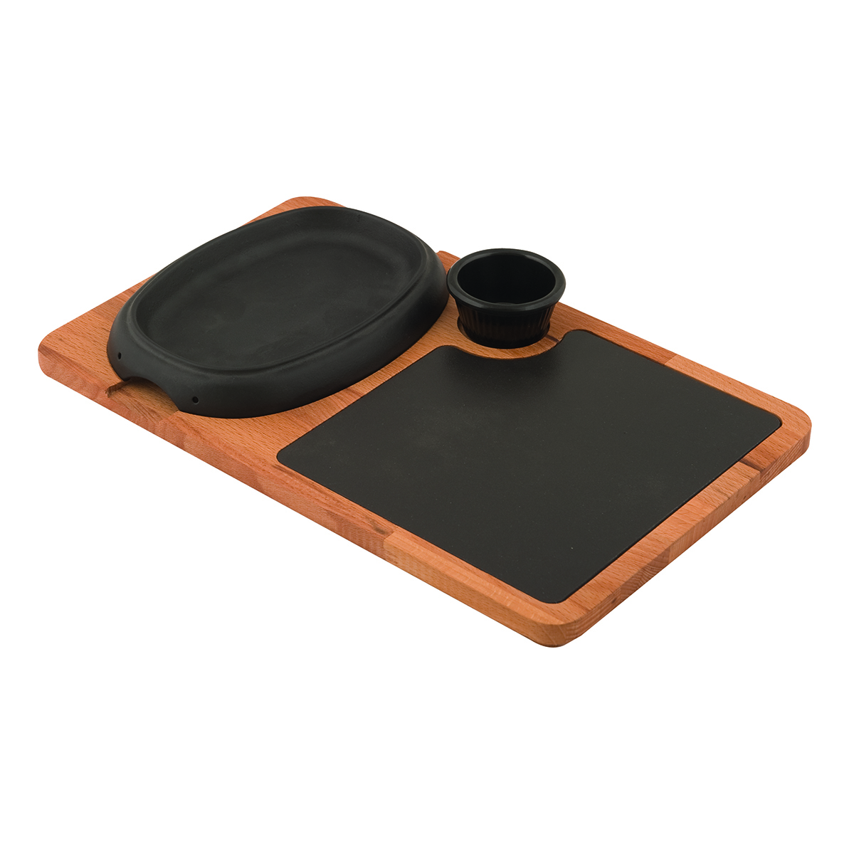 Тарелка для горячего на деревянном подносе 25х39,5.(не включает соусники)