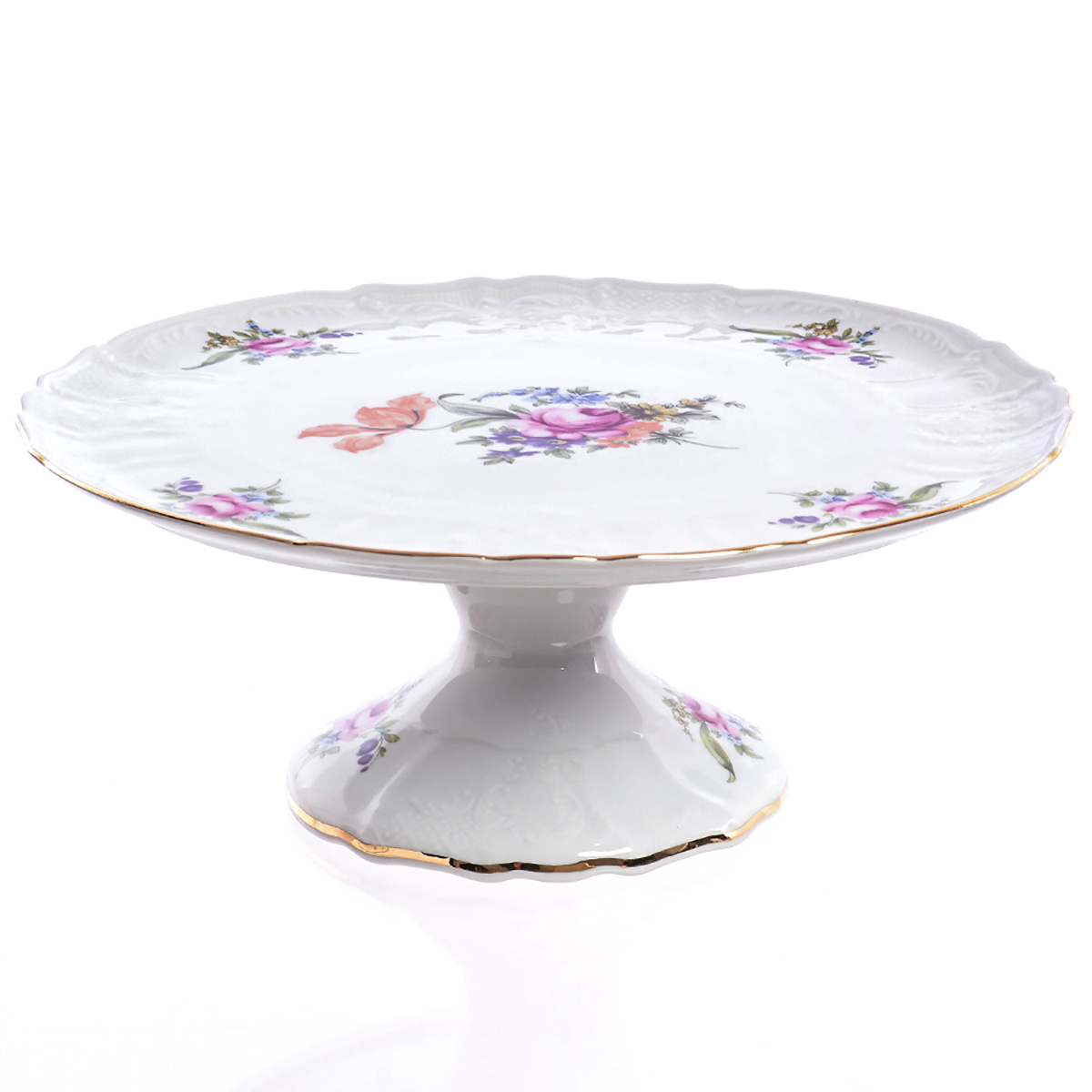 Роскошная тарелка для торта на утонченной ножке. Очень эффектная! Качественный фарфор и любимый многими декор с живым орнаментом трепетных и очаровательных полевых цветов. Когда есть повод для семейного торжества, торт – лучшее завершение любого застолья!