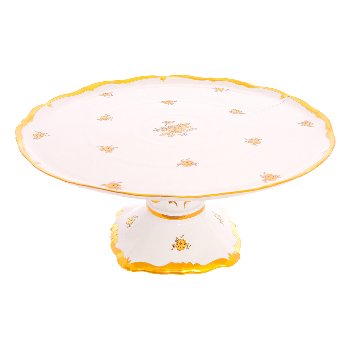 Тарелка для торта на ножке Queen's Crown Золотая роза 30 см