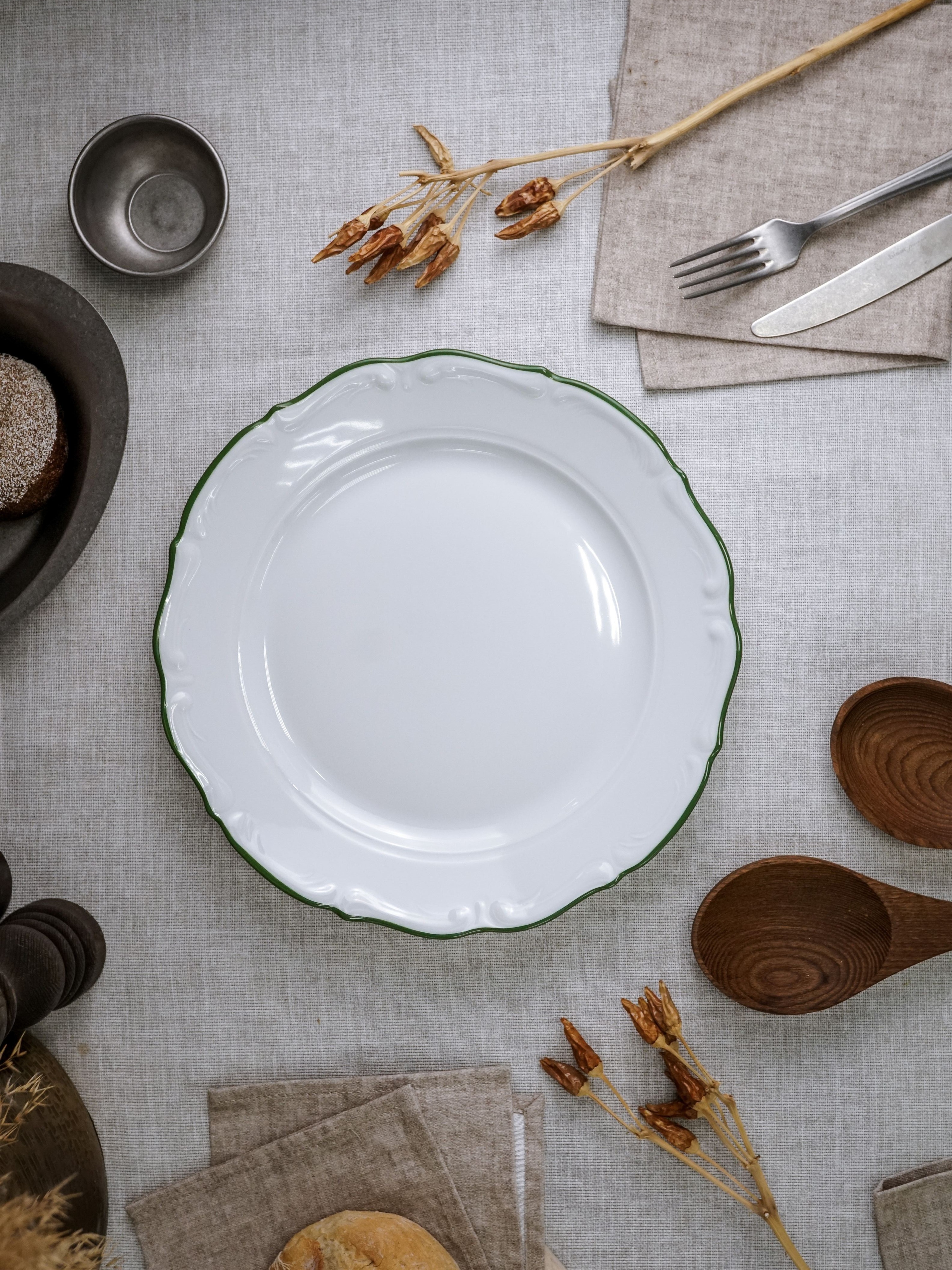 Тарелка мелкая 27 см, кант зелёный