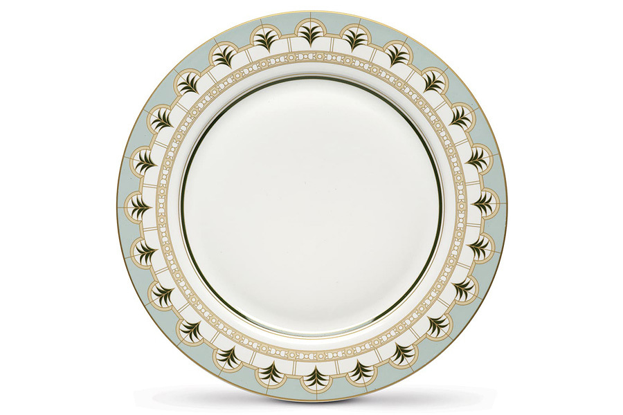 Тарелка обеденная, 27 см, фарфор P, белая, Елочки, с серо-зеленой полосой, Rosita