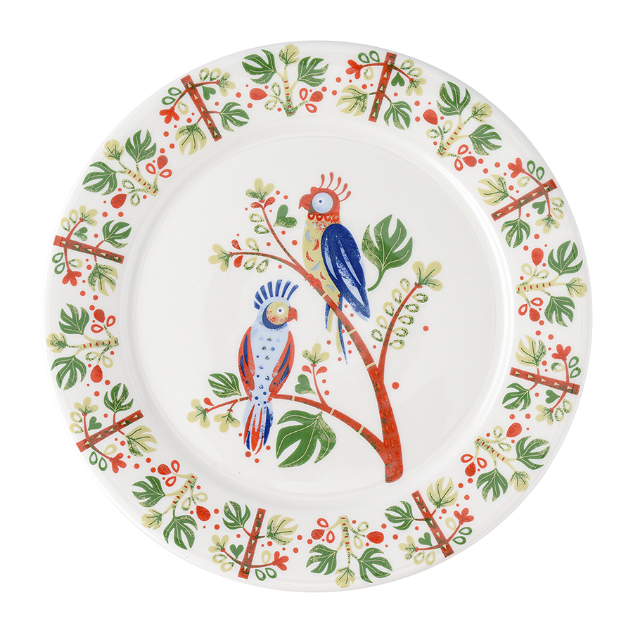 "Тарелка Parrot из коллекции Birds of Paradise – красивая и качественная посуда из фарфора, которая украсит интерьер кухни и сделает любую сервировку особенной.