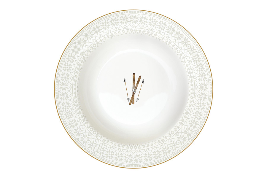 Тарелка суповая, 22 см, фарфор P, белая, Лыжи, Chalet