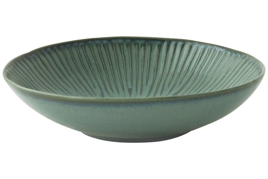 Тарелка суповая, 20х4 см, фарфор P, зеленая, Полосы, Gallery