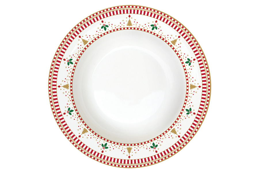 Тарелка суповая, 21,5 см, фарфор P, белая, с золотистым кантом, Елочки и шишки, Nutcracker