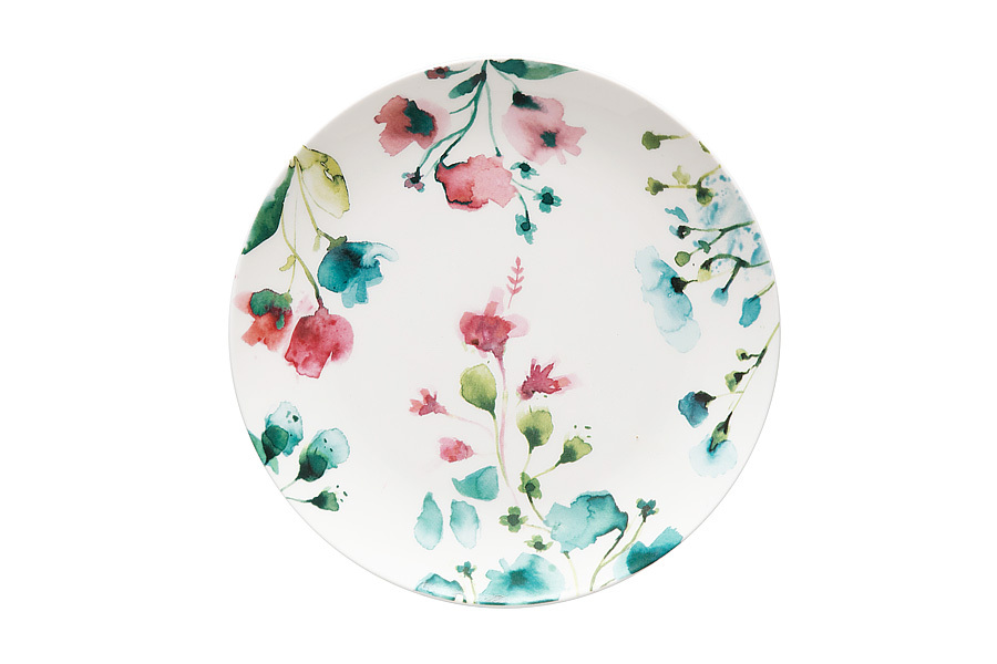 Тарелка закусочная, 19 см, фарфор P, белая, Акварельные цветы, Primavera
