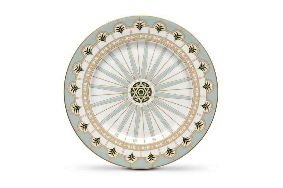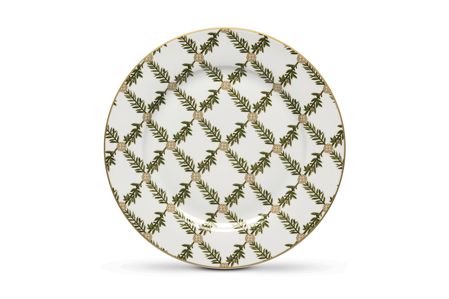 Тарелка закусочная, 19,5 см, фарфор P, белая, Елочки, с серо-зеленой полосой, Rosita