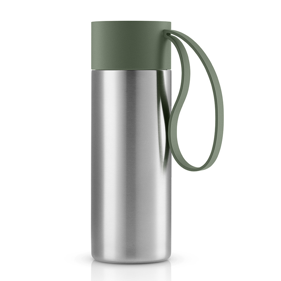 Крышка легко открывается и закрывается даже на ходу, благодаря функциональному клапану, с которым легко справиться одной рукой. Наполните термос горячим кофе или прохладным лимонадом, двойные герметичные стенки сохранят нужную температуру в течение нескольких часов. Практичный силиконовый ремешок удобен для переноски. Объем: 350 мл.