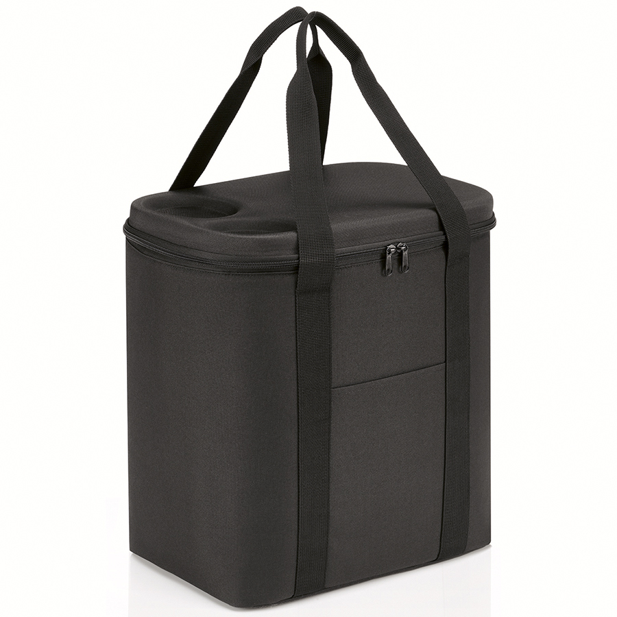 На крышке расположены удобные выемки для напитков. Внутри – термоизоляционный материал, который сохранит продукты в прохладе. Крышка закрывается очень плотно и застегивается на молнию. Тепловая изоляция выполнена из высококачественной алюминиевой фольги. Сумка оборудована удобными ручками для переноски. Материал – прочный водоотталкивающий полиэстер, выполненный из переработанного пластика PET. Объем – 30 л."