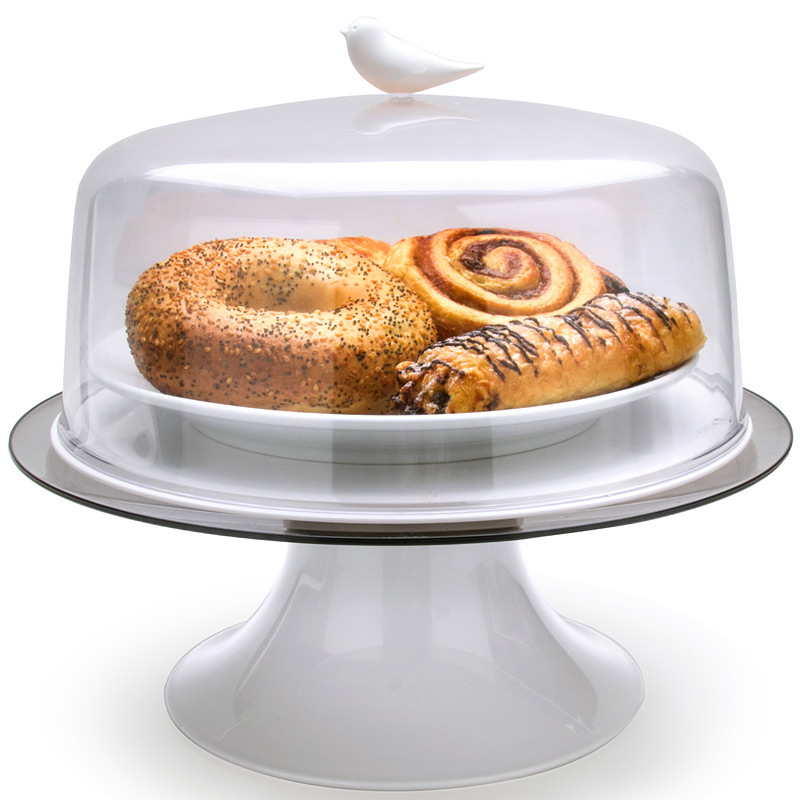 "Красивая тортовница решает проблему подачи тортиков и самодельных пирогов. Плюс ко всему, она идеальна для хранения: вкусности внутри не заветрятся, на них случайно не попадет грязь, а домашние животные не стащат ни кусочка. Можно использовать для блинов, пирожных, нарезанных фруктов, тарталеток и других вкусностей.