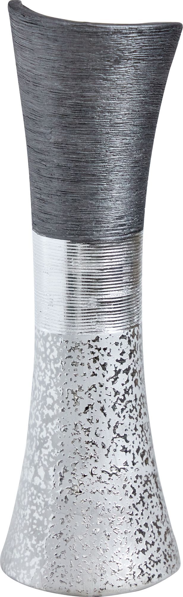 Керамическая ваза с формой вечернего платья, блестящим матовым покрытием черного и фактурно-серебристого оттенков, добавит изысканный металлический блеск и современный стиль любому пространству. Создайте красивую цветочную композицию или просто поставьте эту шикарную вазу на стол в гостиную, спальную комнату или прихожую, подчеркивая индивидуальность и неподражаемость стиля.