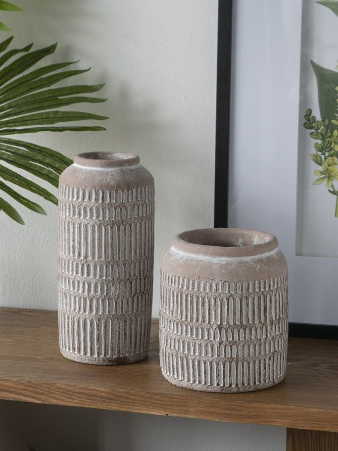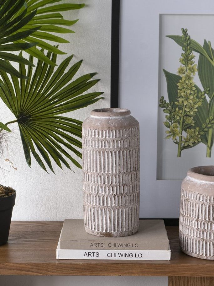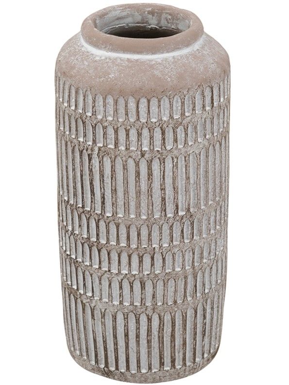 Классический стиль и природное очарование вдохновили создание этой вазы, с цилиндрическим текстурированным силуэтом и коричневым оттенком в винтажном стиле. Ваза с легкостью украсит ваш интерьер и станет идеальным вариантом для украшения каминной полки в гостиной, обеденного стола, кухонной столешницы или комода в спальной комнате.