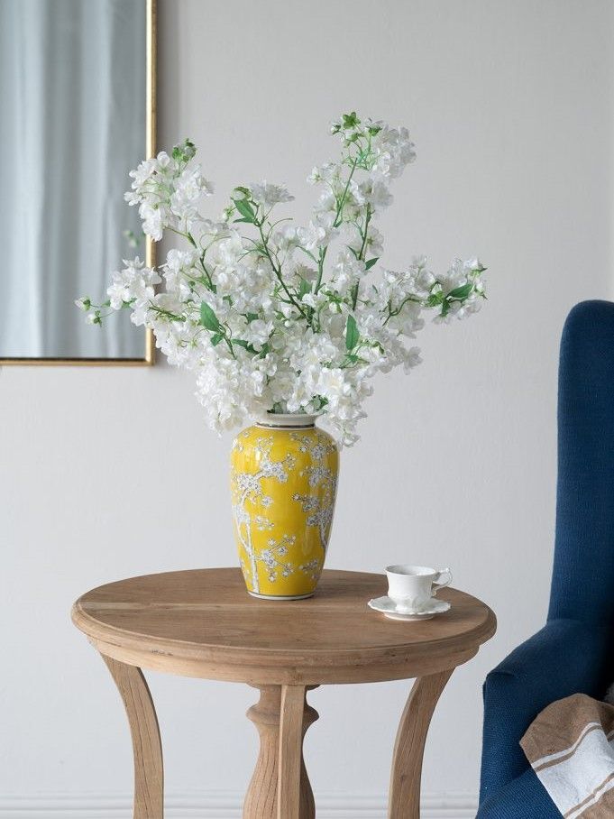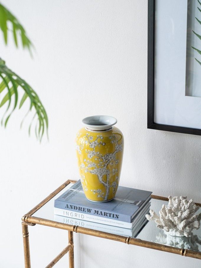 Декоративная ваза с округлым силуэтом и очаровательной желто-белой цветовой гаммой, выполненная из фарфора с ручной росписью мотивами распускающейся весны, привнесет вневременное очарование в ваш домашний декор. Поставьте ее как отдельный элемент декора, или в коллекции с другими изделиями, эта ваза прекрасна в любом интерьере.