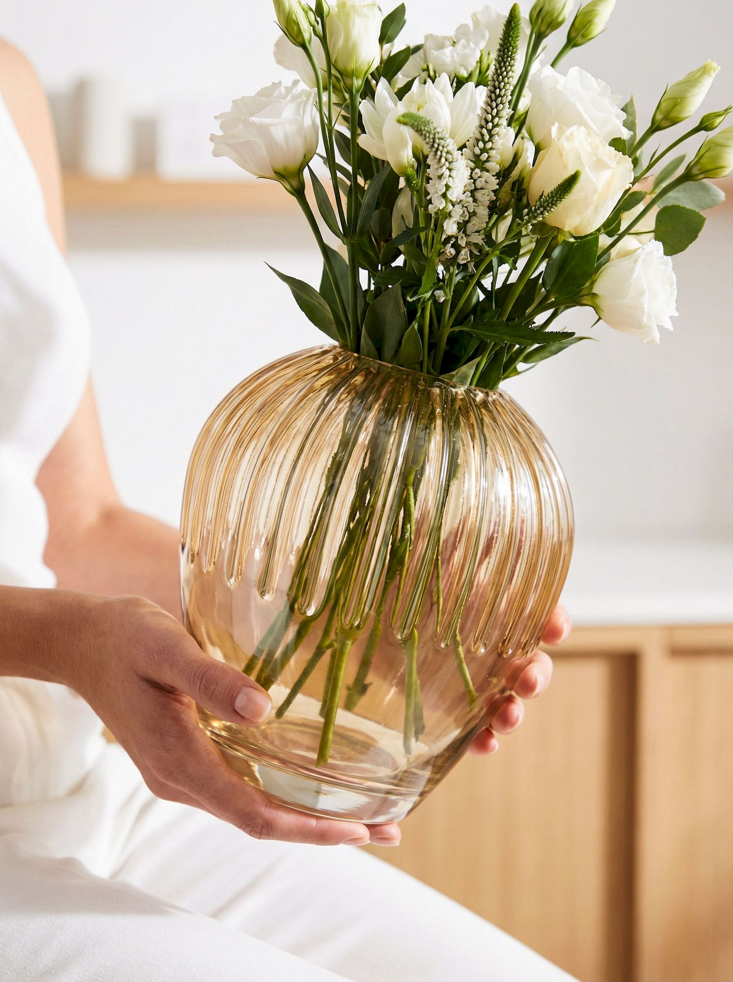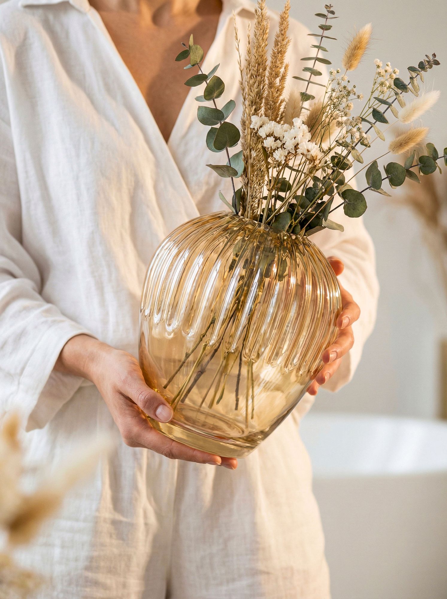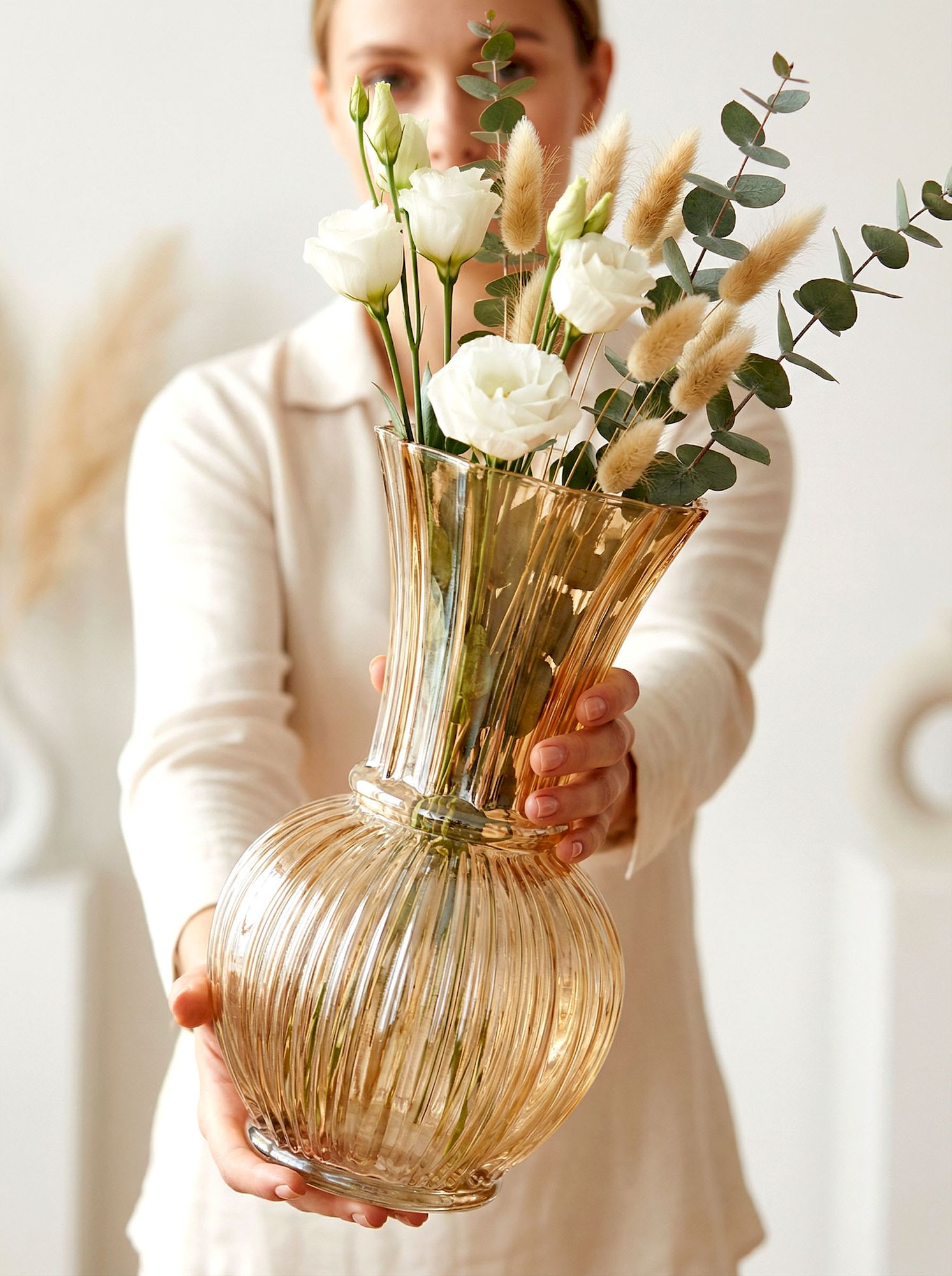 Классическая ваза, выполненная с множеством граней из дымчатого стекла, послужит универсальным дополнением в интерьере любого дома. Используйте вазу в качестве центрального элемента на журнальном или приставном столике, красиво размещая пышные цветочные композиции.