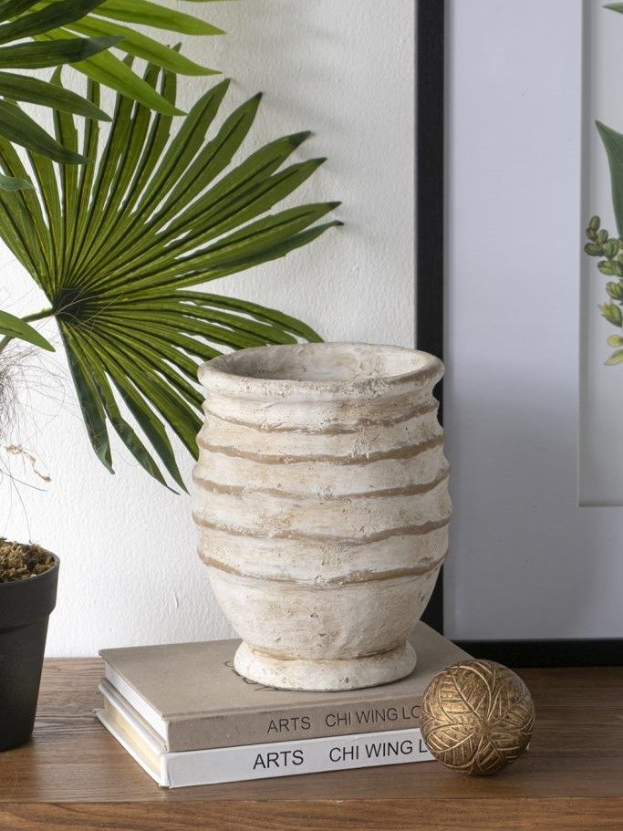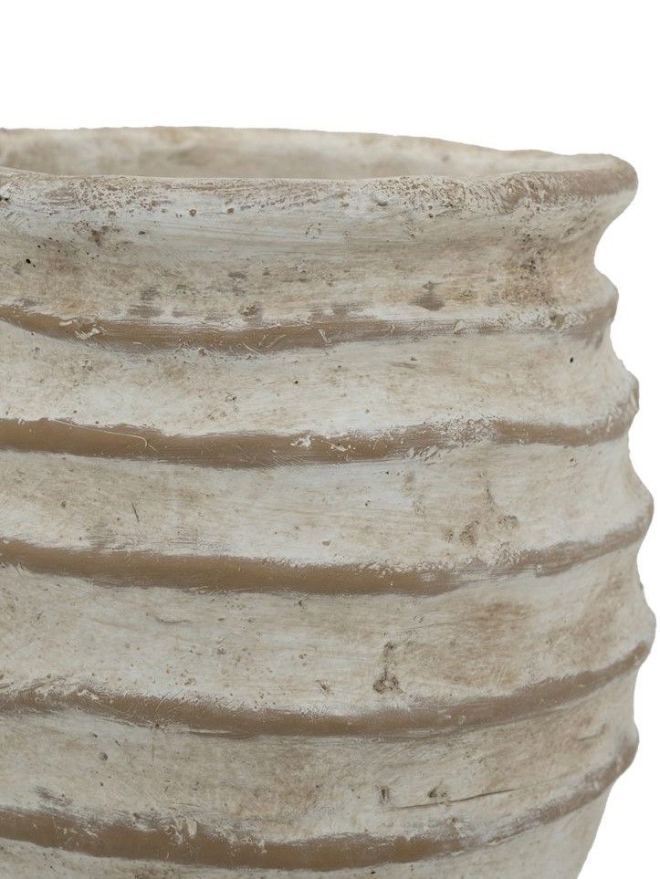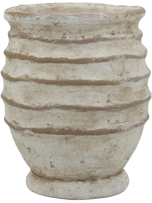 Ваза с округлым ребристым силуэтом и состаренной серо-коричневой отделкой, воплощает в себе художественную сторону деревенского декора. Изделие украсит любое пространство как внутри, так и снаружи, станет отличным самостоятельным акцентом или совместно с пышной цветочной композицией. Идеальный вариант для украшения каминной полки в гостиной, обеденного стола, кухонной столешницы или комода в спальной комнате.