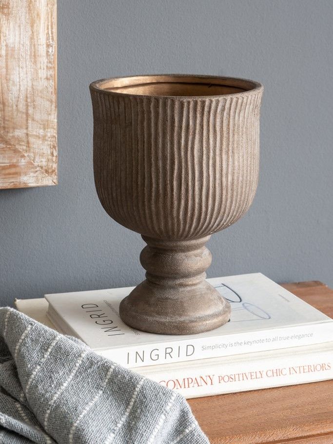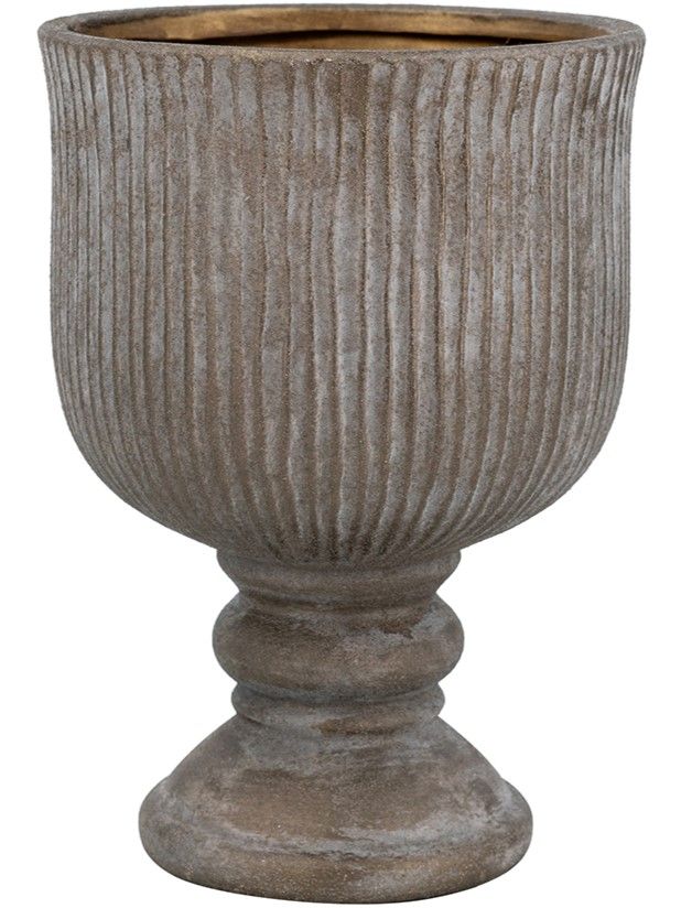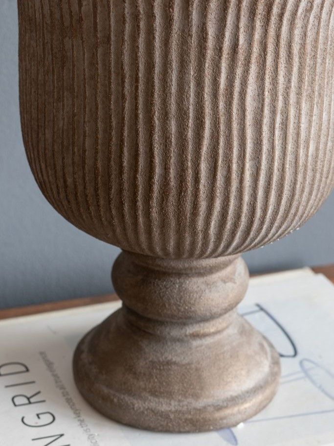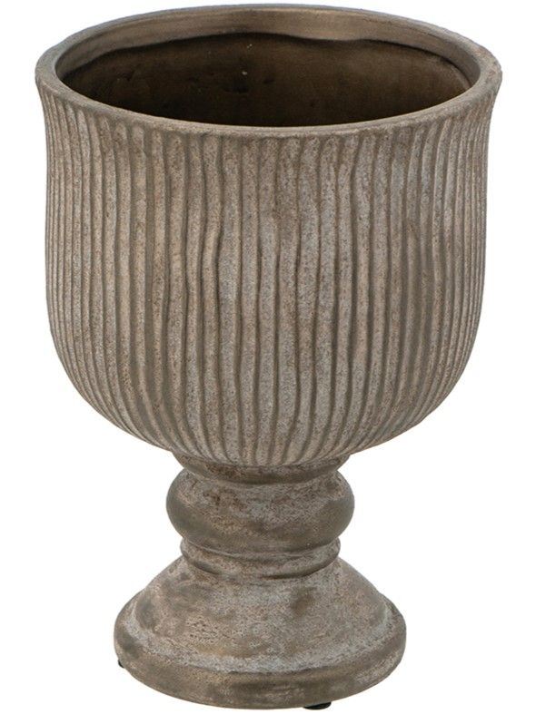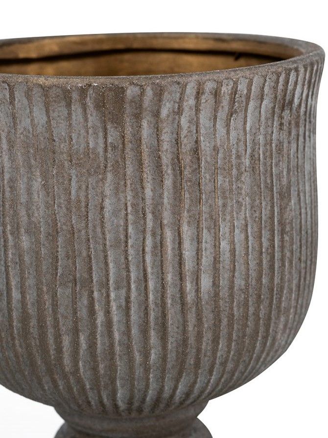 Керамическая ваза, вдохновленная красотой античных кубков, отличается изящным ребристым силуэтом, округлой формой и изысканной бронзовой отделкой. Независимо от того, стоит ли ваза отдельно, в классическом ансамбле или в сочетании с пышными цветочными композициями, она обязательно привлечет внимание на любом столе, каминной полке или комоде. Рифленый дизайн и состаренная цветовая гамма позволяют этому изделию гармонично сочетаться с переходными, дворянскими, эклектичными и традиционными стилями, благодаря чему органично вписывается в любой интерьер.