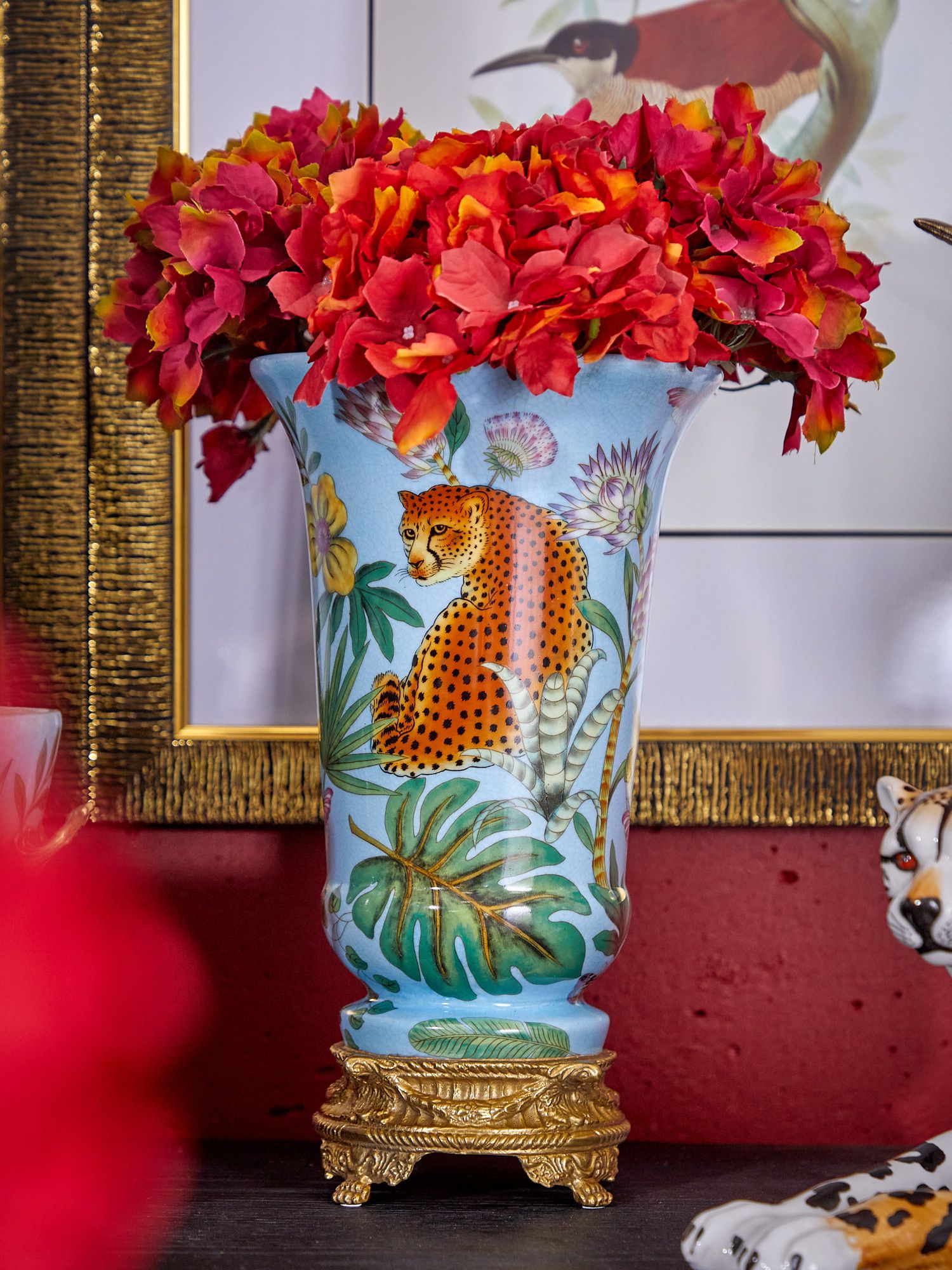 Ваза на подставке, выполненная из фарфора с бронзовыми элементами. Уникальное изделие ручной работы. При производстве этих художественных изделий из фарфора с бронзой используются вековые традиции китайских мастеров. Видимые трещинки (кракелюры) делаются по уникальной технологии, что придает более благородный вид старинного изделия.