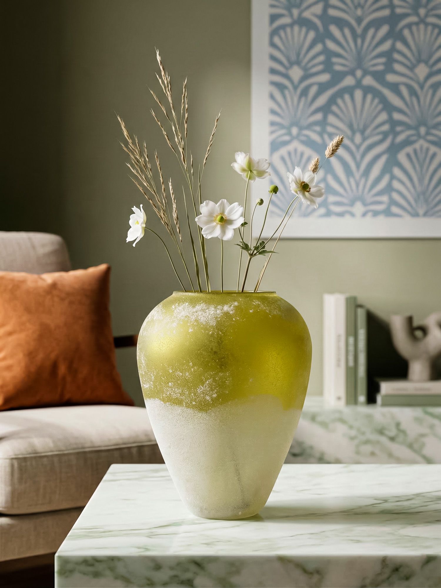 Изысканная ваза классической формы, выполненная из зеленого стекла с матовым эффектом, создающим впечатление многослойной глазури, послужит ярким акцентным дополнением в интерьере любого дома. Используйте вазу в качестве центрального элемента на журнальном или приставном столике, каминной или книжной полке, красиво размещая пышные цветочные композиции.