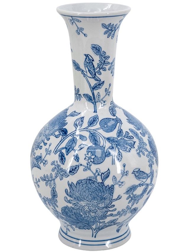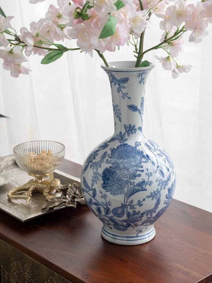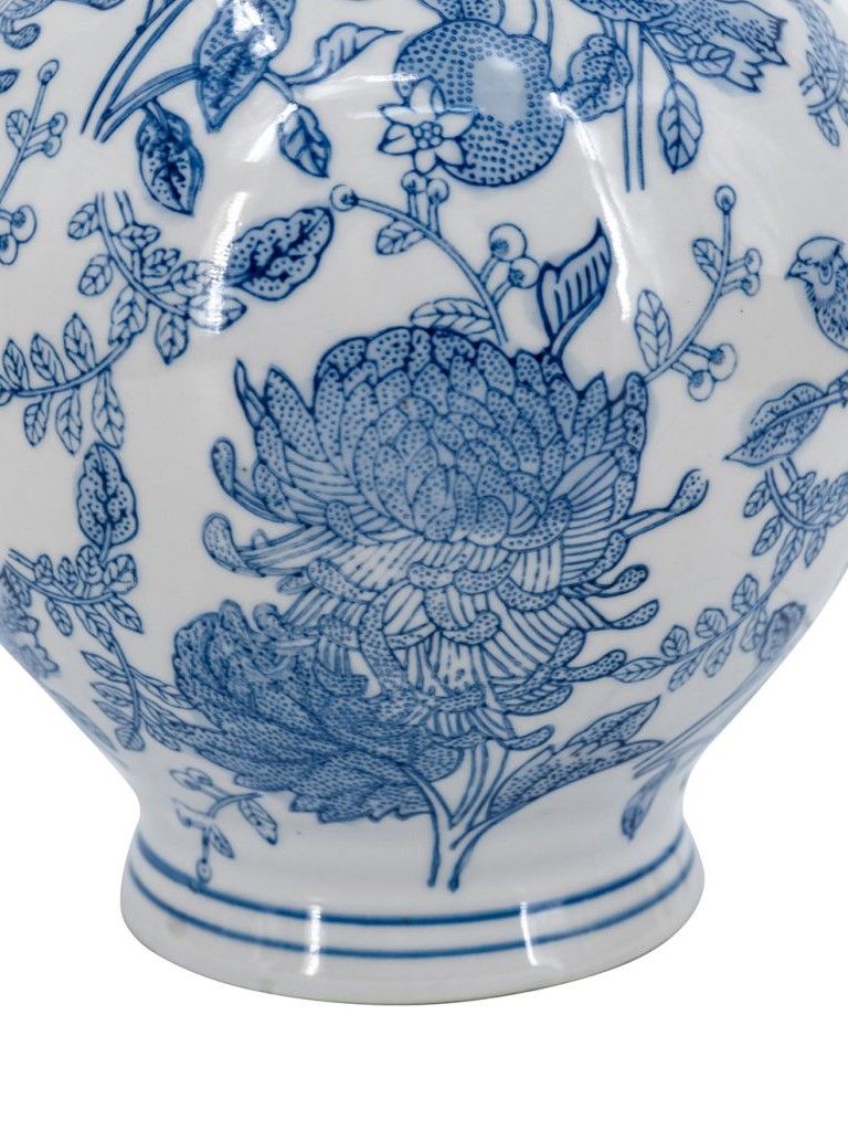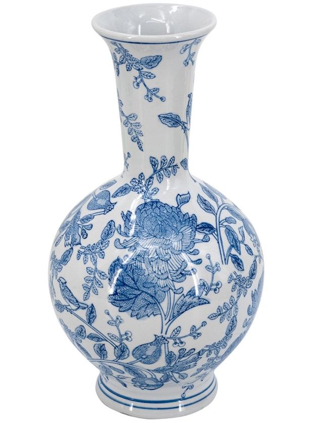 Фарфоровая ваза, вдохновленная элегантным дизайном времен династии Мин в Китае, имеет широкий округлый силуэт, узкое горлышко и изящные синие цветочные мотивы, которые грациозно переплетаются на белоснежном фоне. Разместите изделие на вашем журнальном столике, каминной полке или создайте свой дизайн интерьера совместно с изделиями из этой коллекции. Неподвластная времени форма и изысканные детали позволяют вазе дополнять традиционный, богемный, эклектичный и переходный стили, органично вписываясь в любой интерьер.