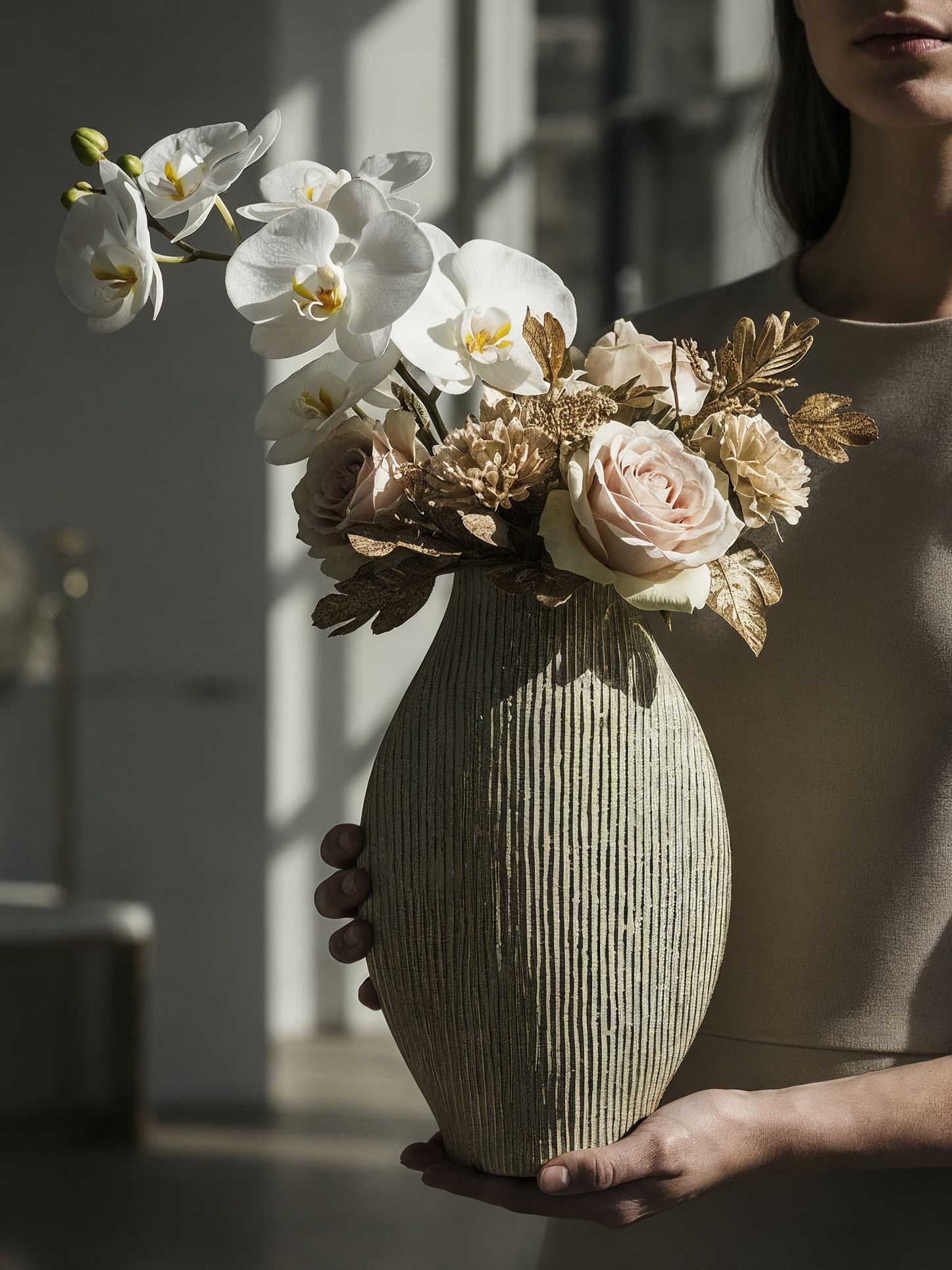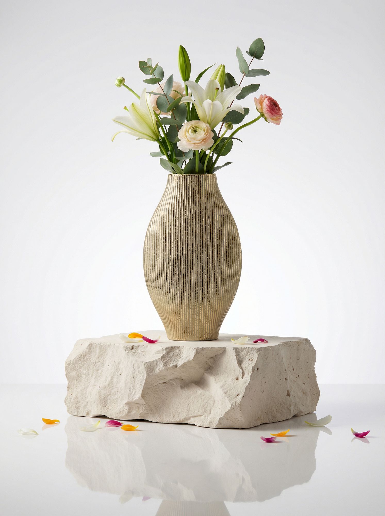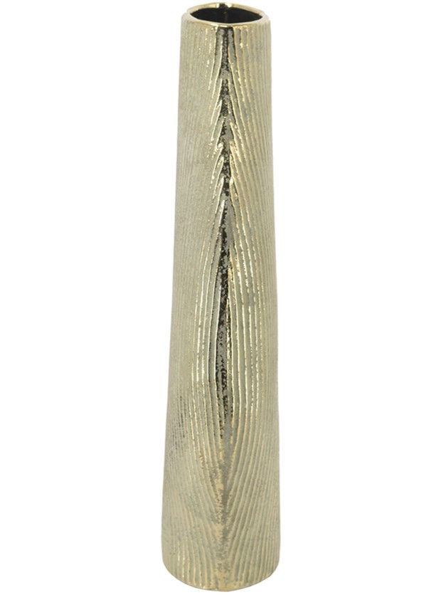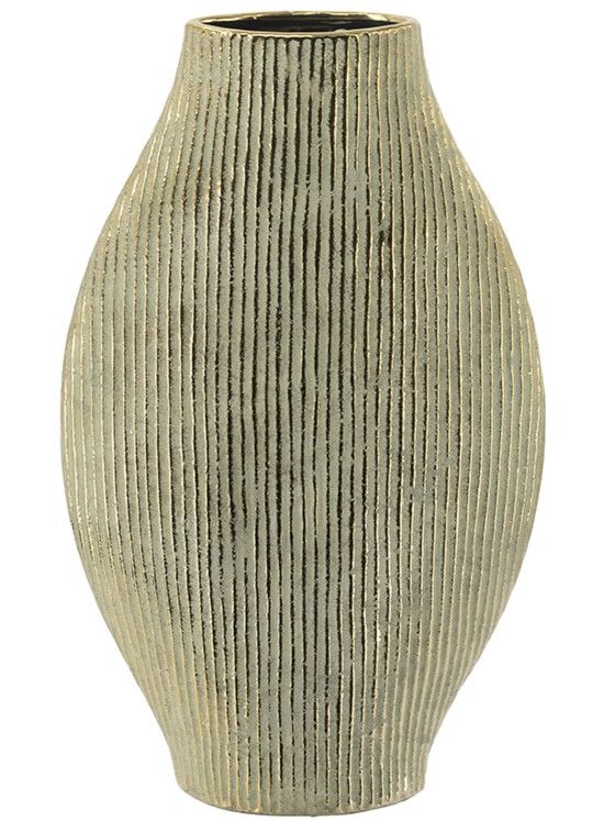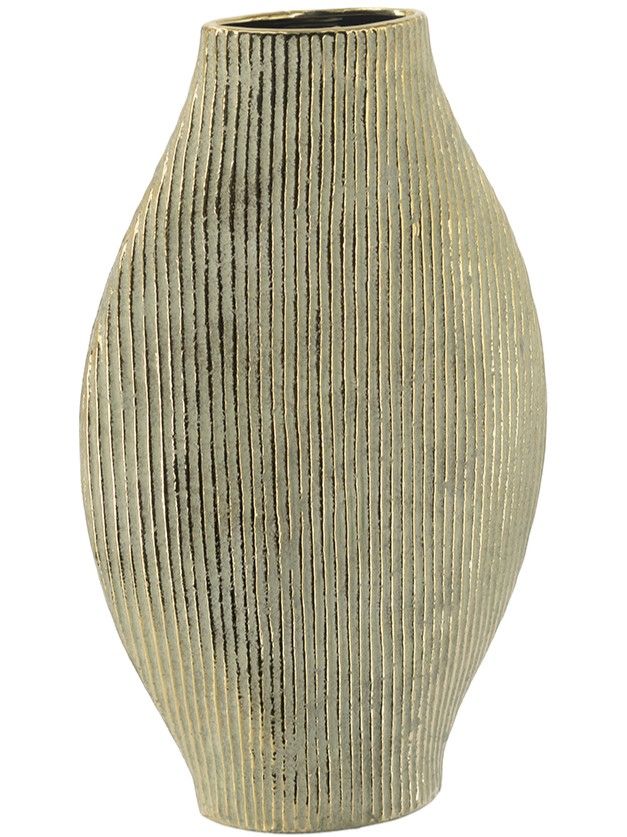 Керамическая ваза продемонстрирует классический силуэт, украшенный фактурной волнистой отделкой золотистого цвета. Независимо от того, выставлена ​​ли она как отдельная часть декора или заполнена яркой коллекцией цветов, ваза обязательно послужит изысканным центральным элементом на вашем журнальном столике, каминной полке или серванте.
