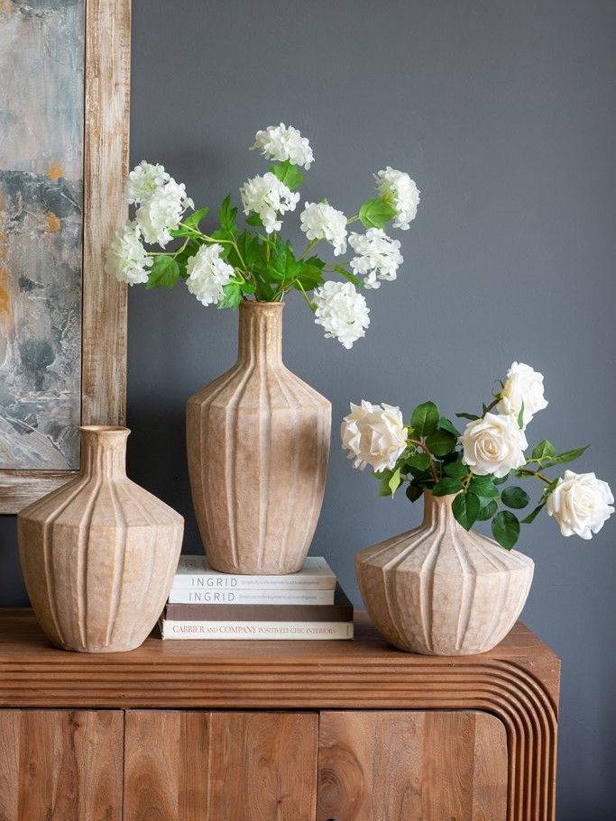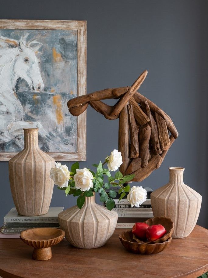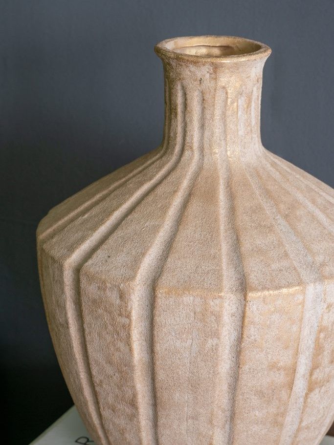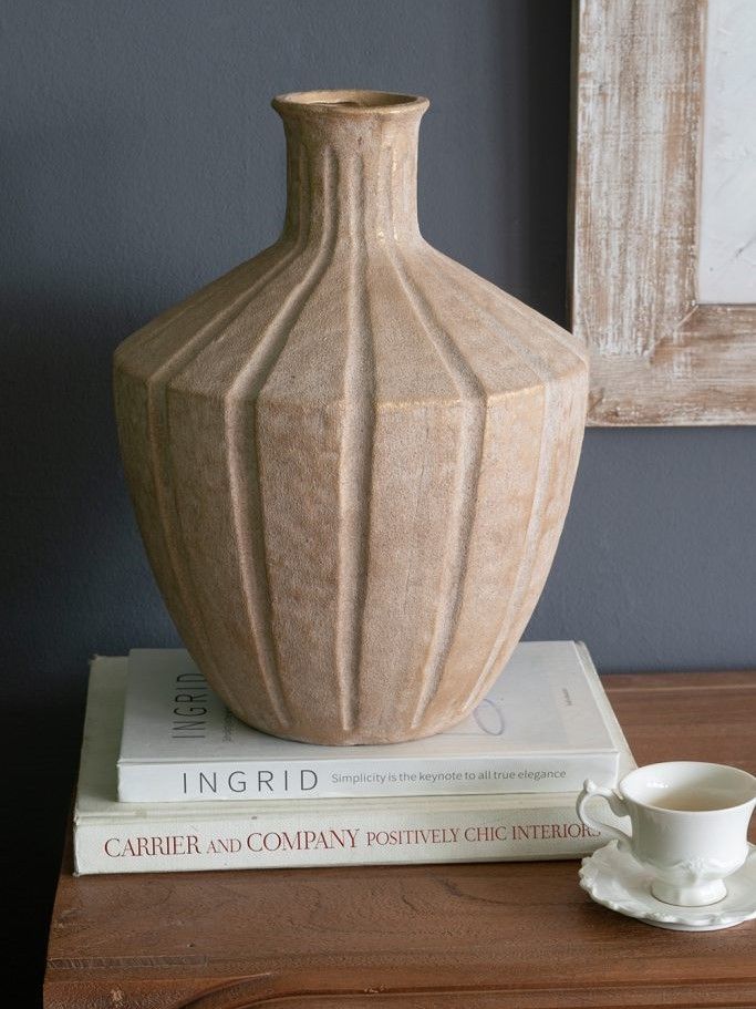 Изысканная ваза, вдохновленная красотой древней тосканской керамики, отличается округлым силуэтом, заметной ребристой текстурой и приглушенным коричневым покрытием в винтажном стиле. Ваза станет заметным центральным элементом как отдельно, так и в сочетании с яркими цветочными букетами, привнося природного очарования в вашу гостиную, прихожую, спальную комнату или кабинет. Скульптурный дизайн и изящные изгибы позволяют этой вазе гармонично сочетаться с переходными, органичными современными, ваби-саби и богемными стилями.
