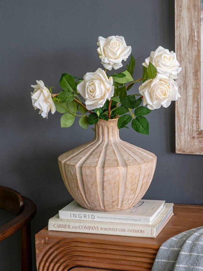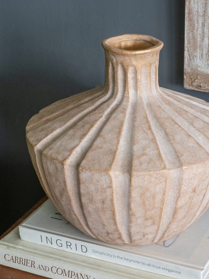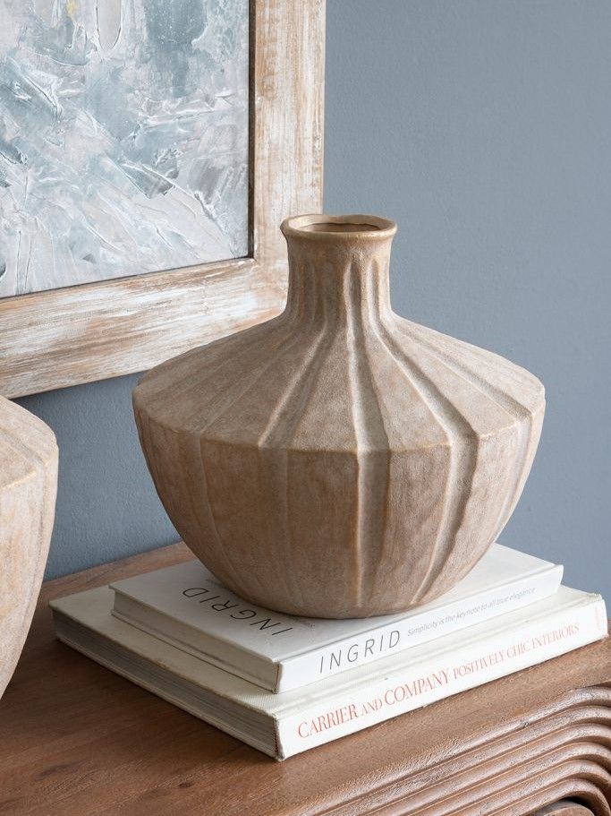 Изысканная ваза, вдохновленная красотой древней тосканской керамики, отличается округлым силуэтом, заметной ребристой текстурой и приглушенным коричневым покрытием в винтажном стиле. Ваза станет заметным центральным элементом как отдельно, так и в сочетании с яркими цветочными букетами, привнося природного очарования в вашу гостиную, прихожую, спальную комнату или кабинет. Скульптурный дизайн и изящные изгибы позволяют этой вазе гармонично сочетаться с переходными, органичными современными, ваби-саби и богемными стилями.