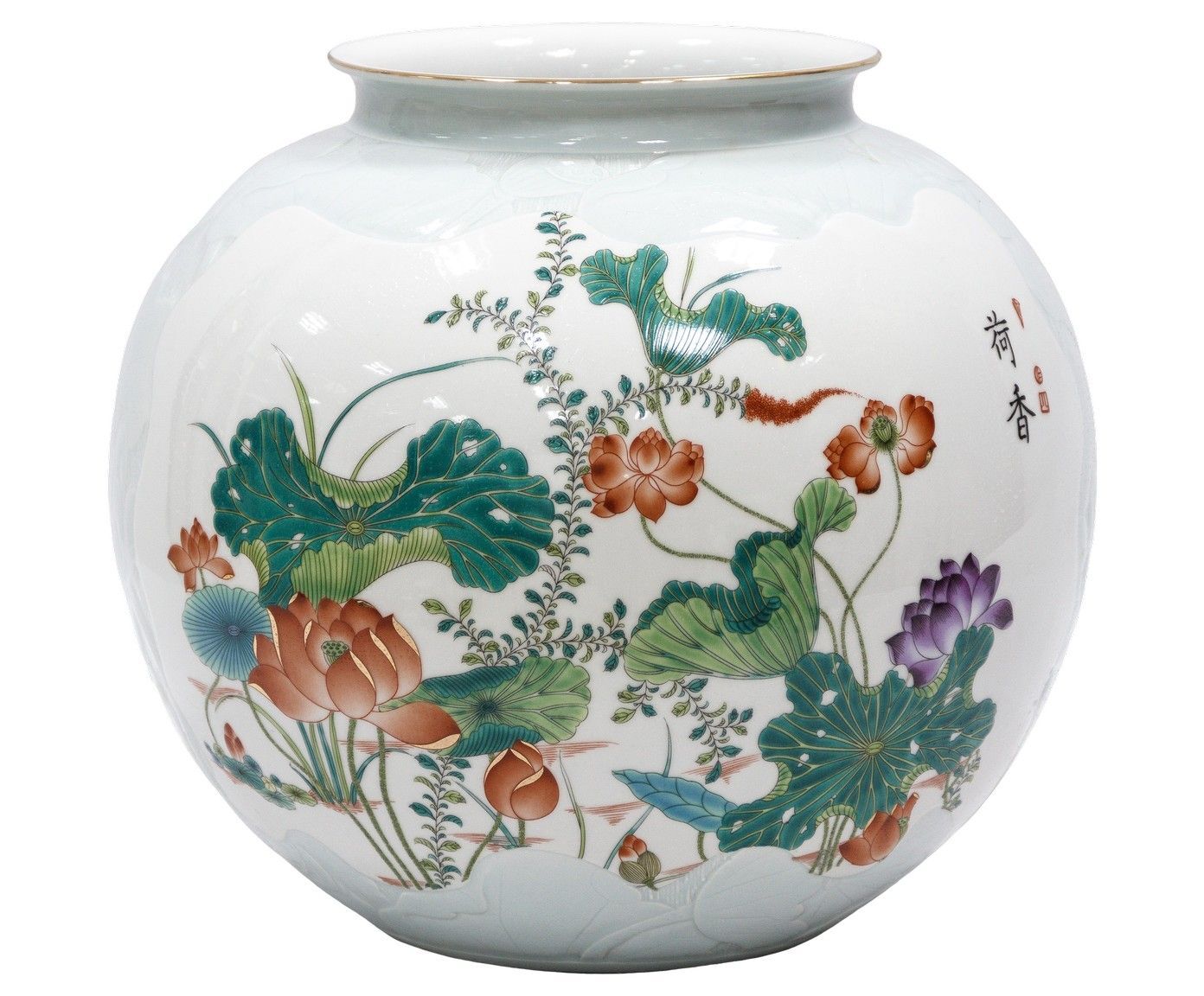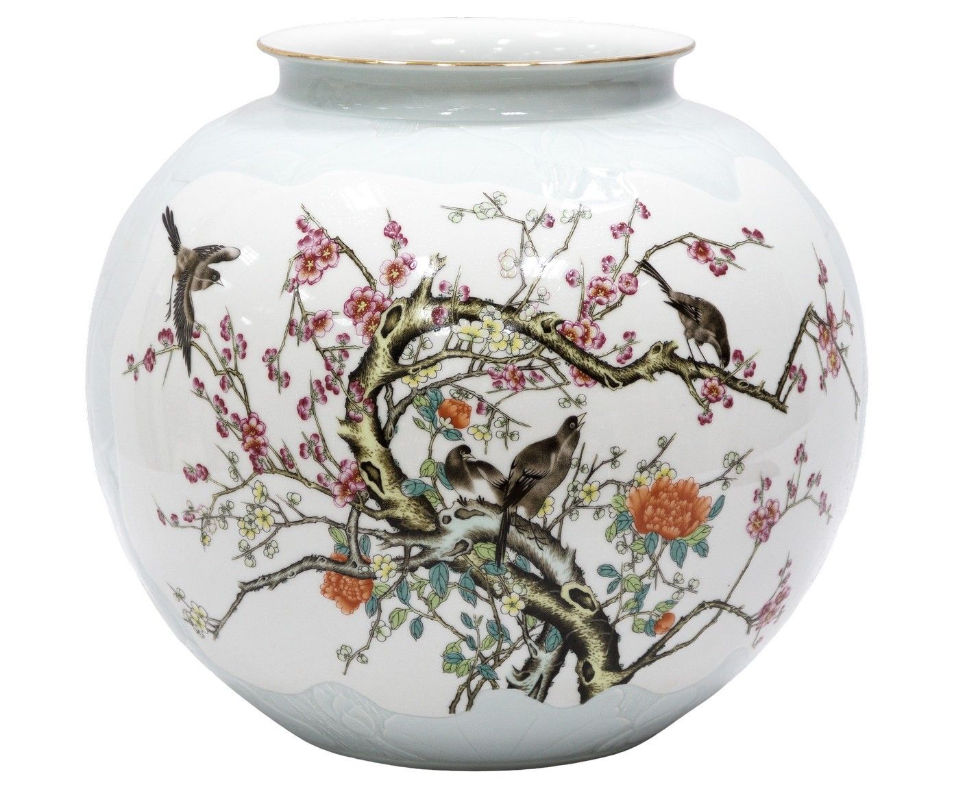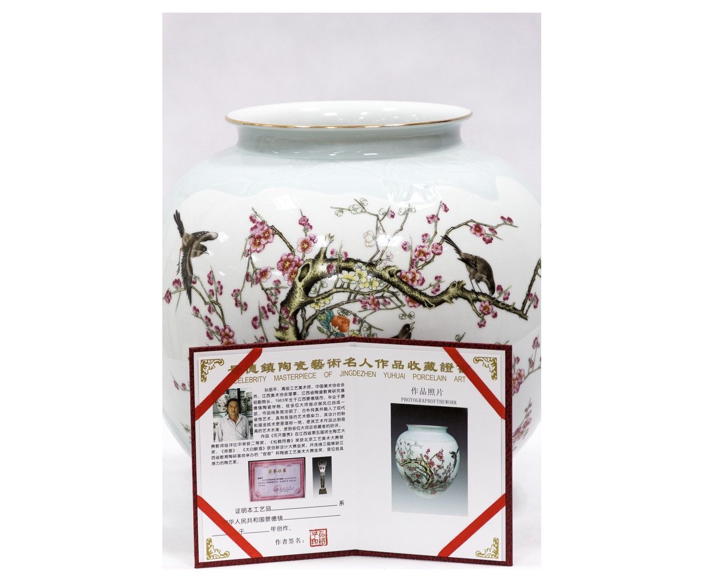 Фарфоровая ваза с ярким цветочным орнаментом. В комплекте паспорт с описанием вазы на китайском языке и фотографией вазы и художника, расписавшего её.