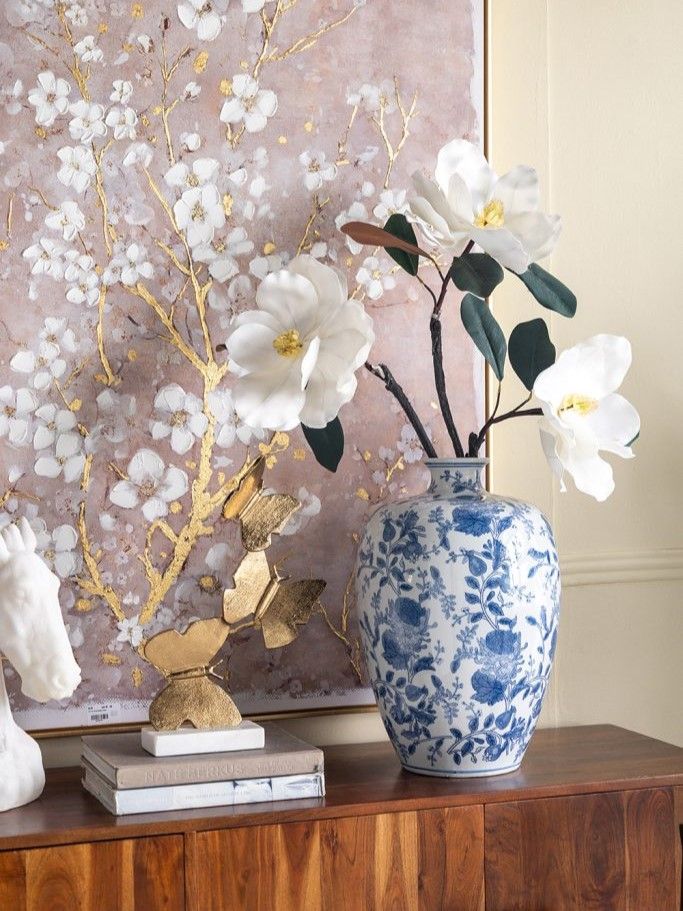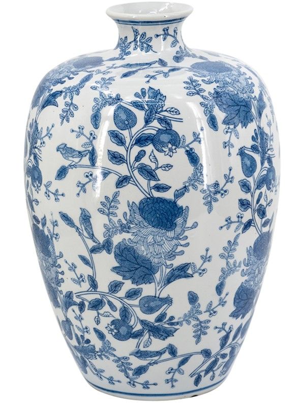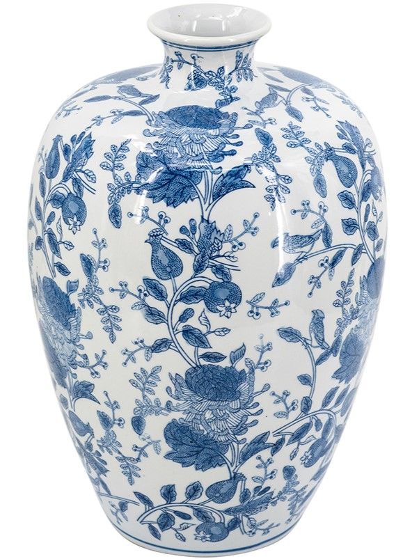 Фарфоровая ваза, вдохновленная элегантным дизайном времен династии Мин в Китае, имеет широкий округлый силуэт, узкое горлышко и изящные синие цветочные мотивы, которые грациозно переплетаются на белоснежном фоне. Разместите изделие на вашем журнальном столике, каминной полке или создайте свой дизайн интерьера совместно с изделиями из этой коллекции. Неподвластная времени форма и изысканные детали позволяют вазе дополнять традиционный, богемный, эклектичный и переходный стили, органично вписываясь в любой интерьер.