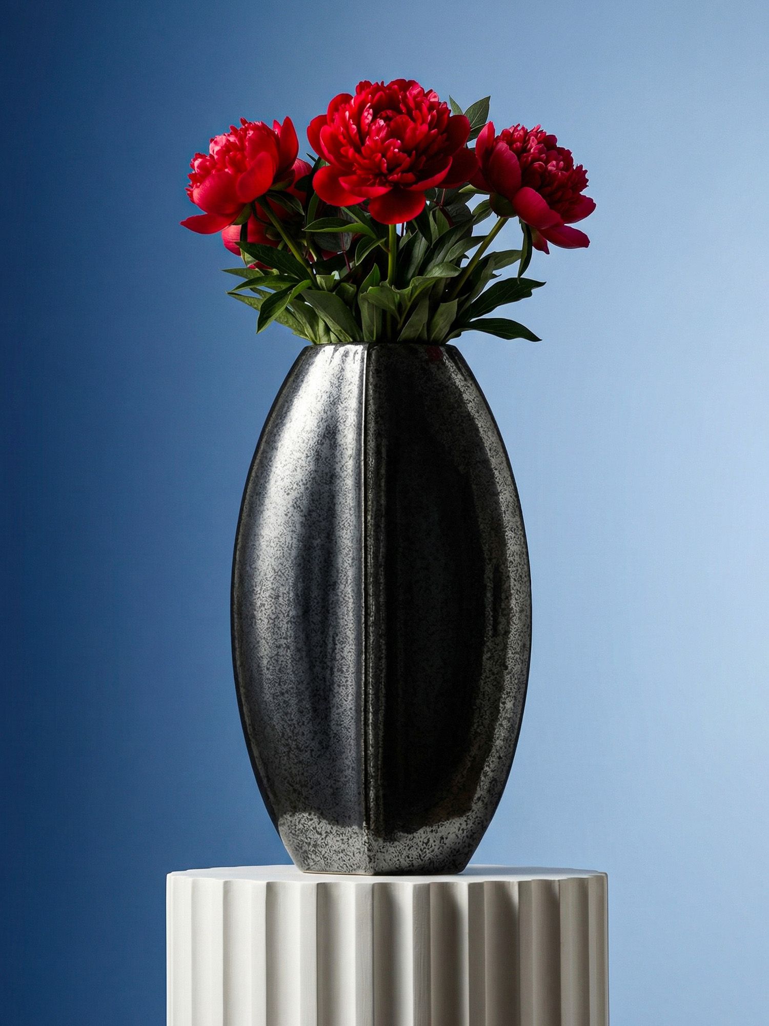 Элегантная форма вазы с черным глянцевым фоном и винтажной отделкой - это оригинальный вариант украшения вашего интерьера, который смотрится роскошно и стильно на любой поверхности . Ваза идеально подойдет для шикарного офиса или гостиной.