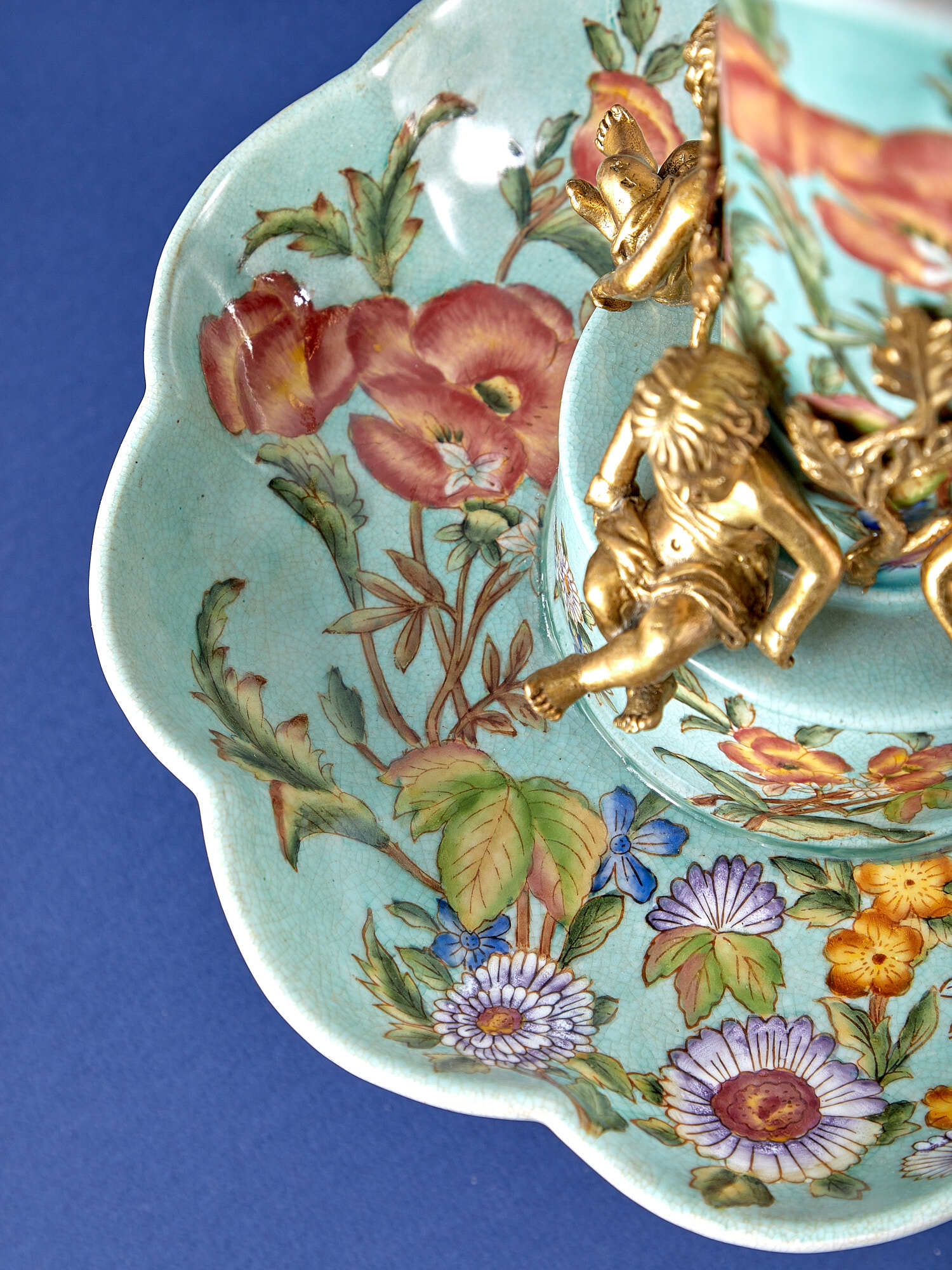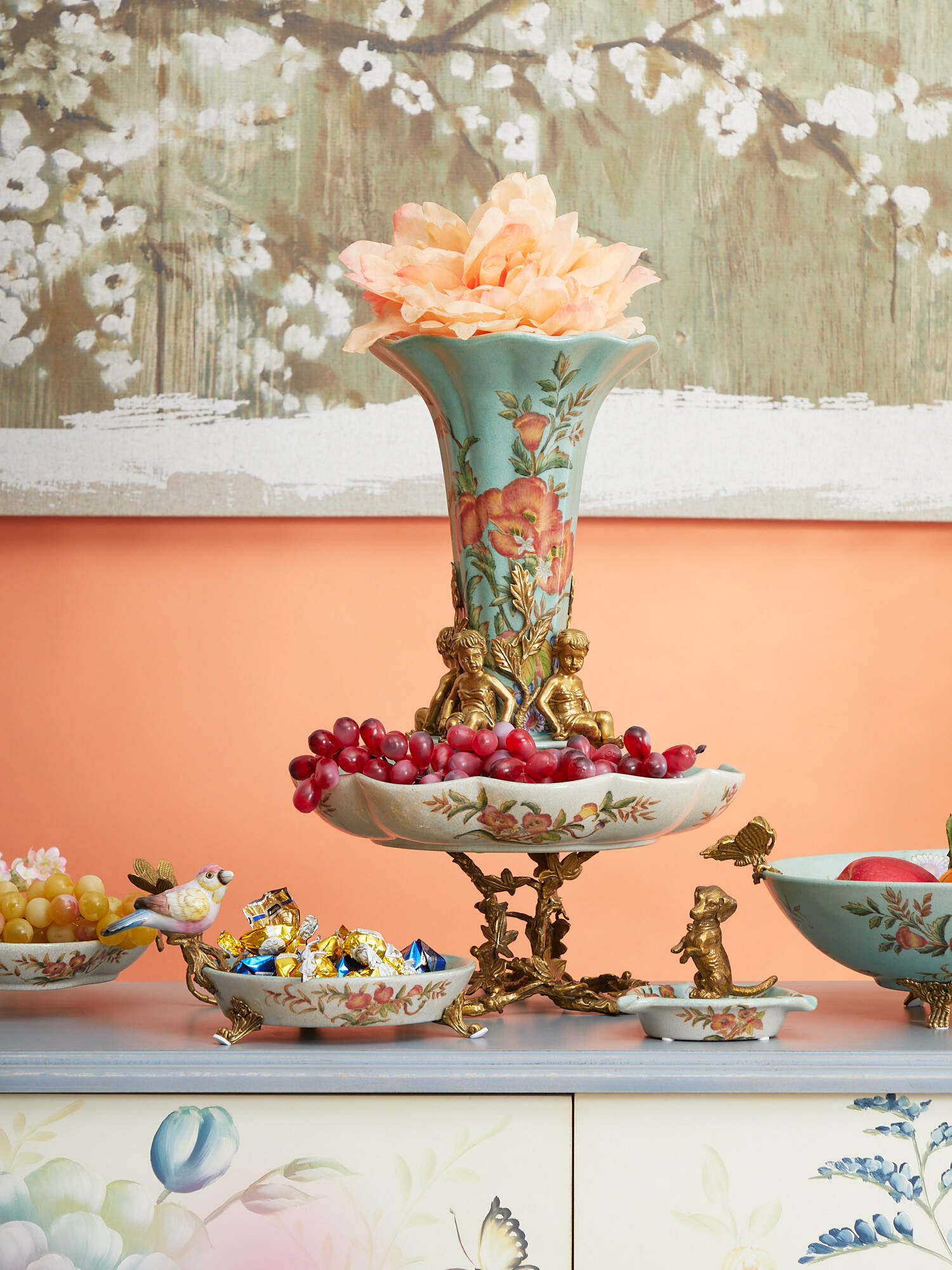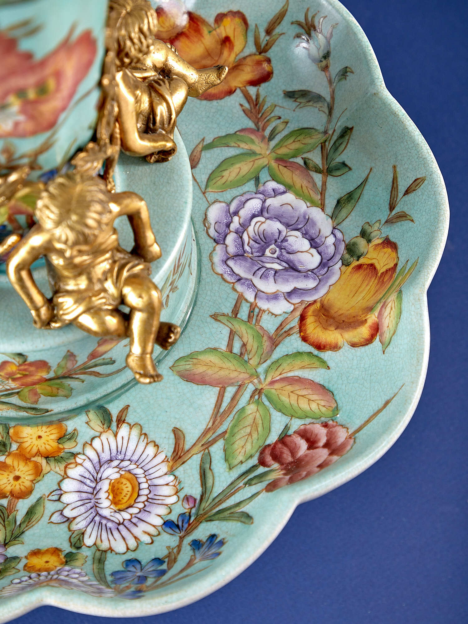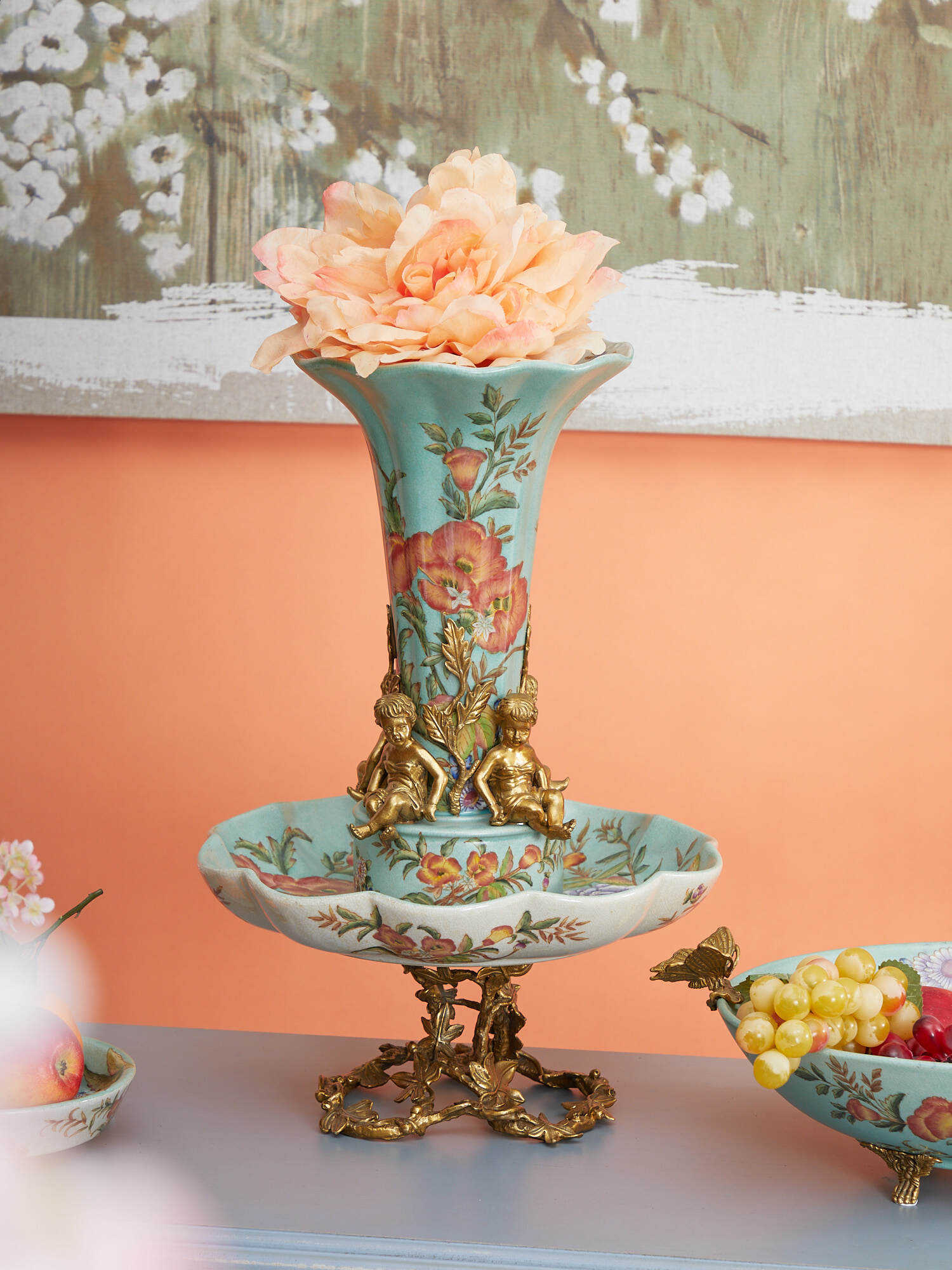 Ваза, выполненная из фарфора с бронзовыми элементами. Уникальное изделие ручной работы. При производстве этих художественных изделий из фарфора с бронзой используются вековые традиции китайских мастеров. Видимые трещинки (кракелюры) делаются по уникальной технологии, что придает более благородный вид старинного изделия.