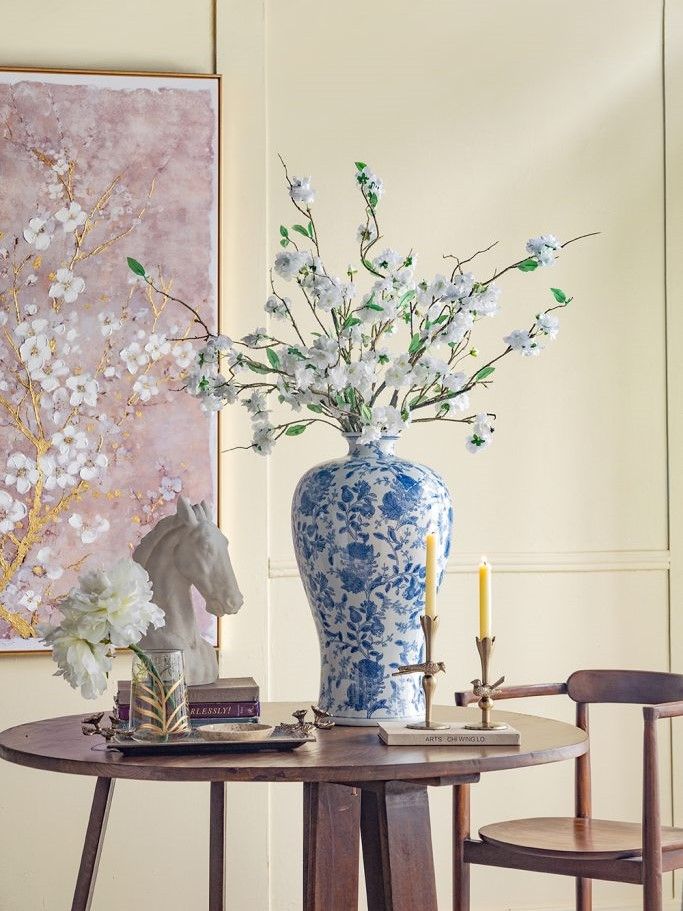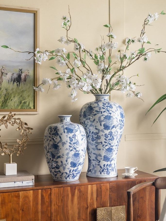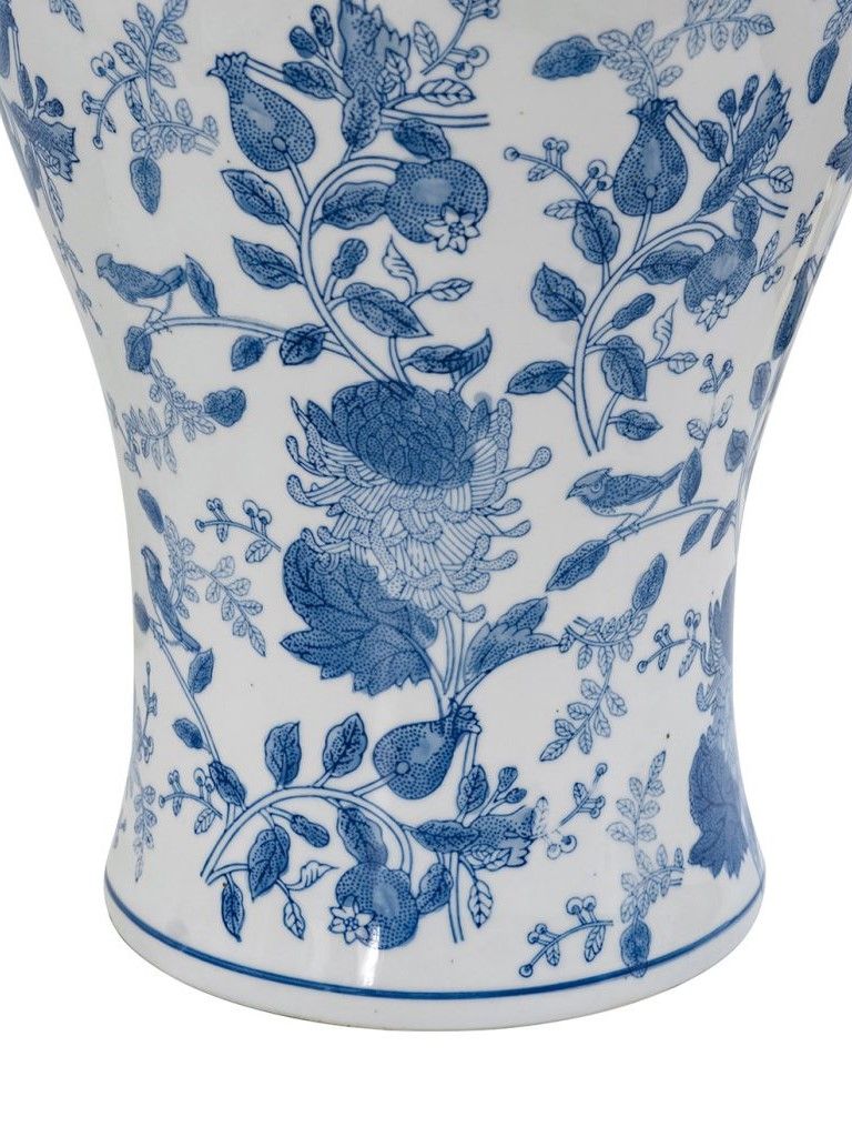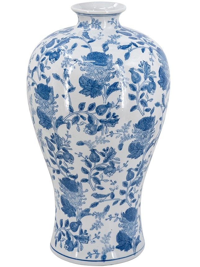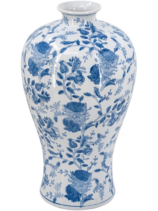 Фарфоровая ваза, вдохновленная элегантным дизайном времен династии Мин в Китае, имеет широкий округлый силуэт, узкое горлышко и изящные синие цветочные мотивы, которые грациозно переплетаются на белоснежном фоне. Разместите изделие на вашем журнальном столике, каминной полке или создайте свой дизайн интерьера совместно с изделиями из этой коллекции. Неподвластная времени форма и изысканные детали позволяют вазе дополнять традиционный, богемный, эклектичный и переходный стили, органично вписываясь в любой интерьер.