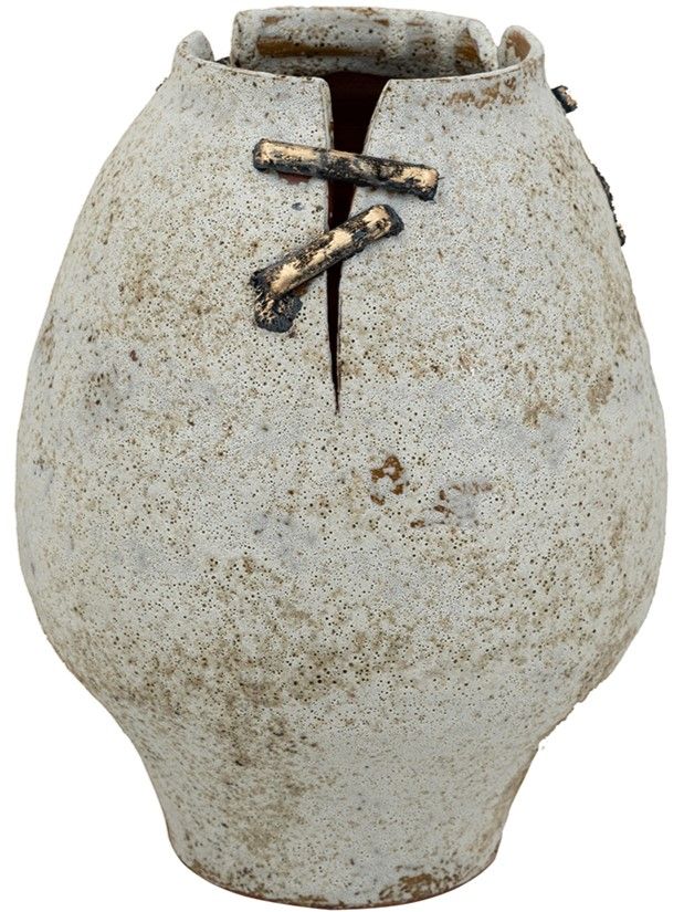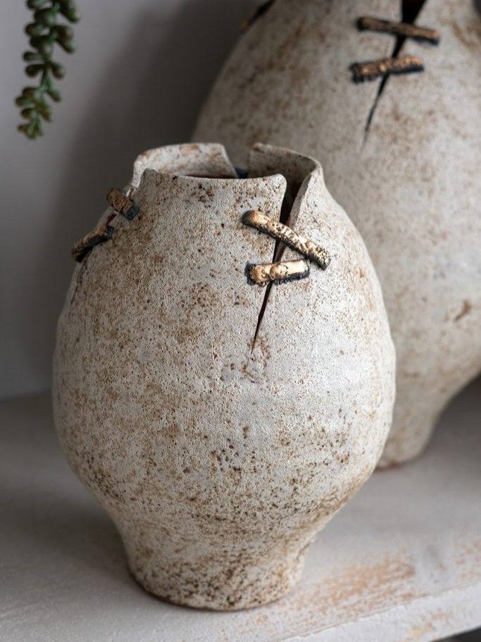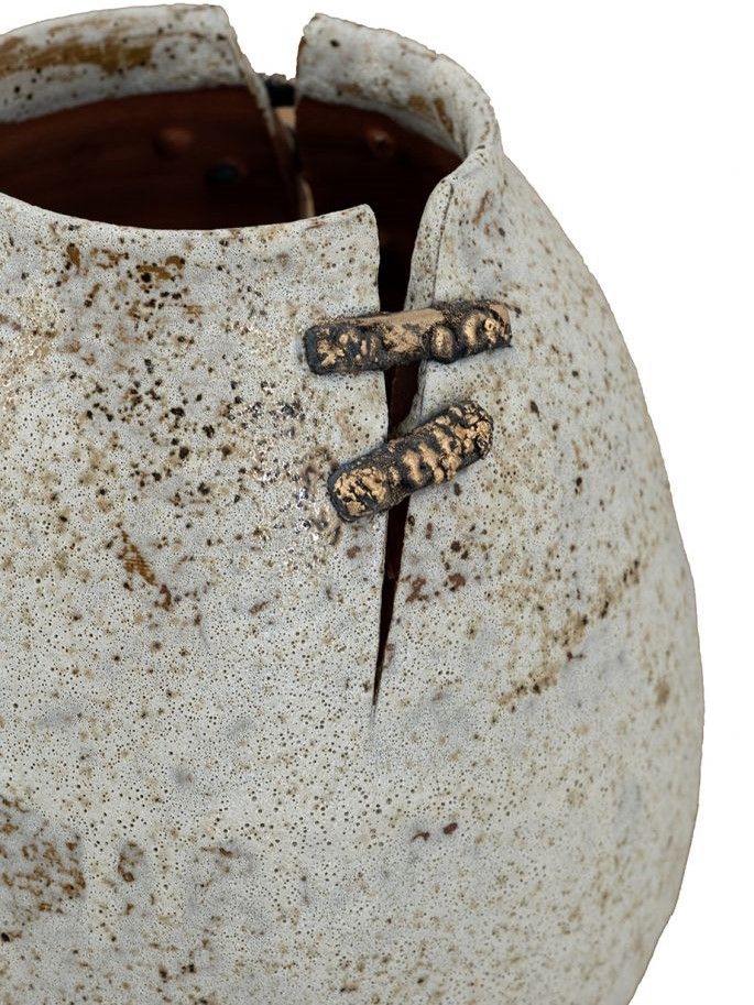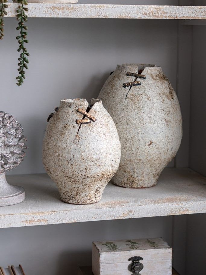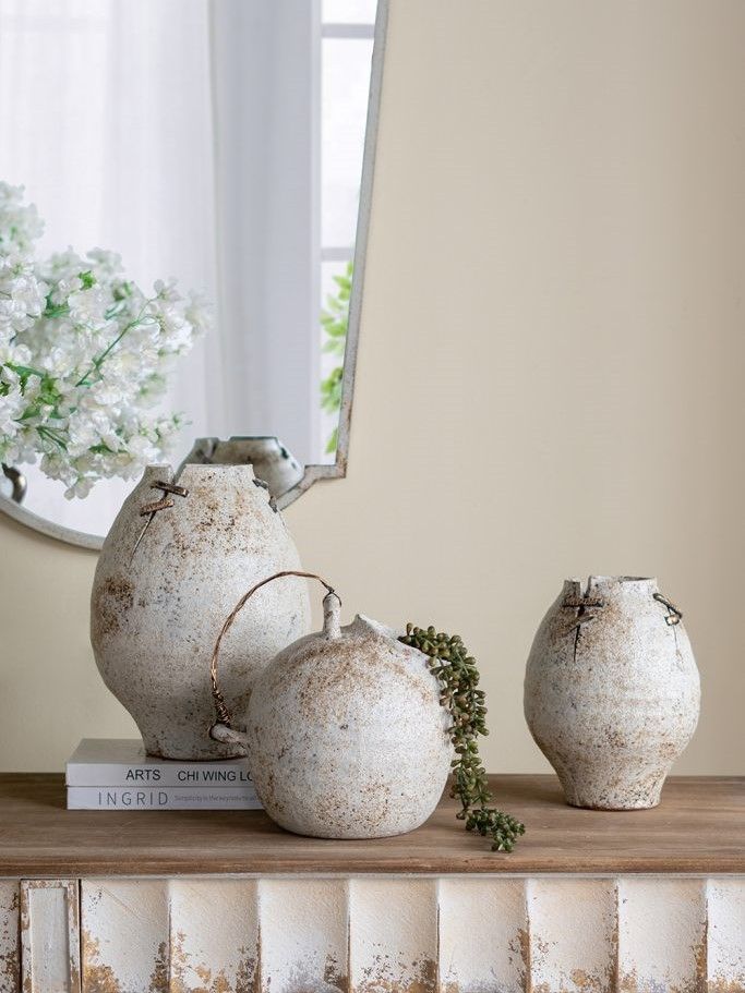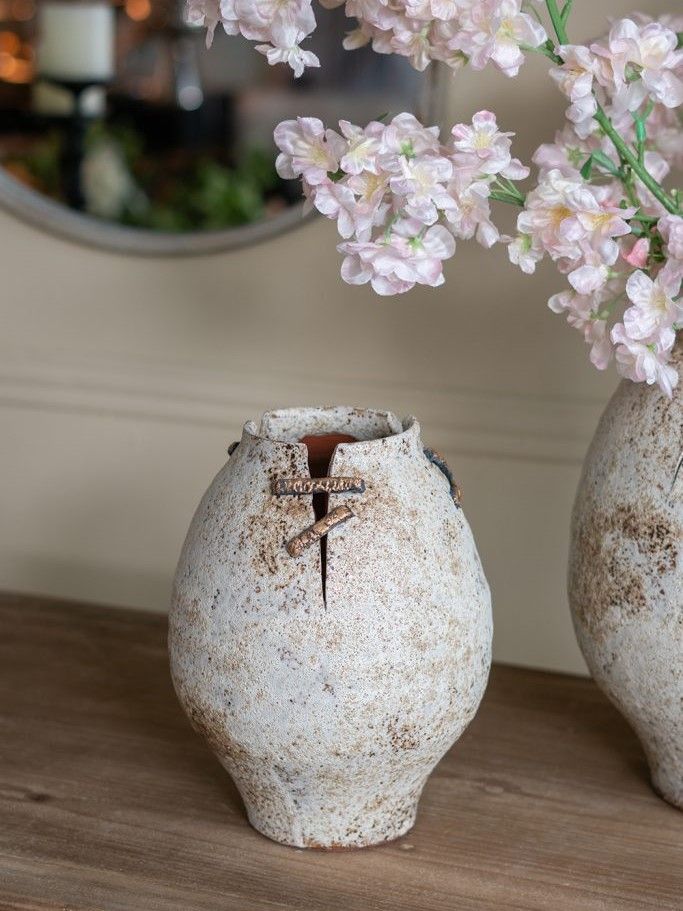 Керамическая ваза, вдохновленная первозданной красотой древней керамики, имеет органичный силуэт, состаренную поверхность и проволочные акценты, напоминающие традиционные методы реставрации. Независимо от того, будет ли она стоять сама по себе или в сочетании с искусственными цветами, она обязательно привнесет в вашу гостиную, прихожую или просторный холл природного очарования. Эстетика ручной работы и органическая текстура позволяют этому изделию дополнять интерьеры в стиле французской провинции, рустикальном, фермерском и других стилях, гармонично вписываясь в любую обстановку.