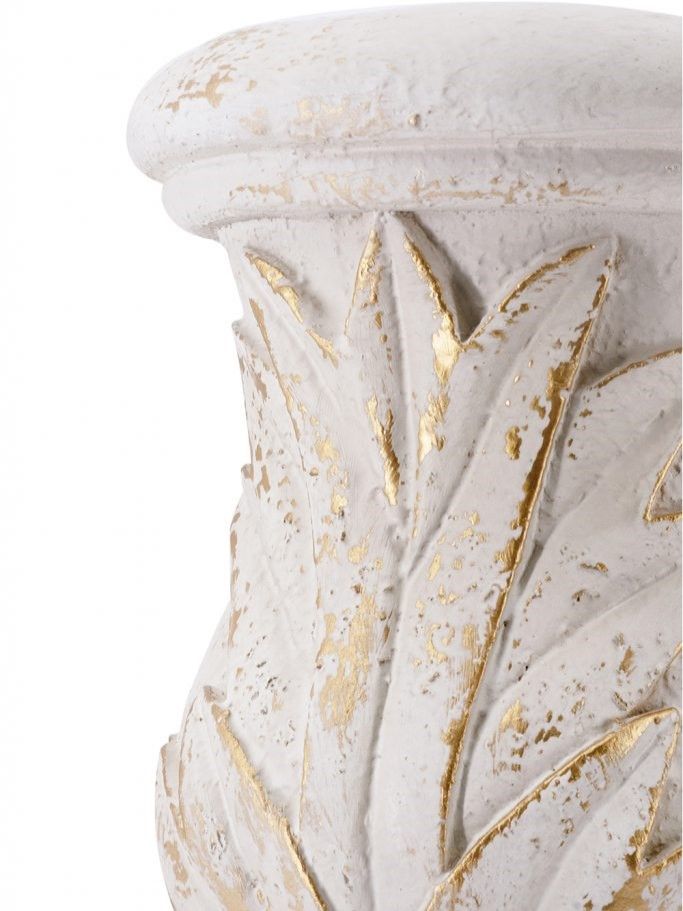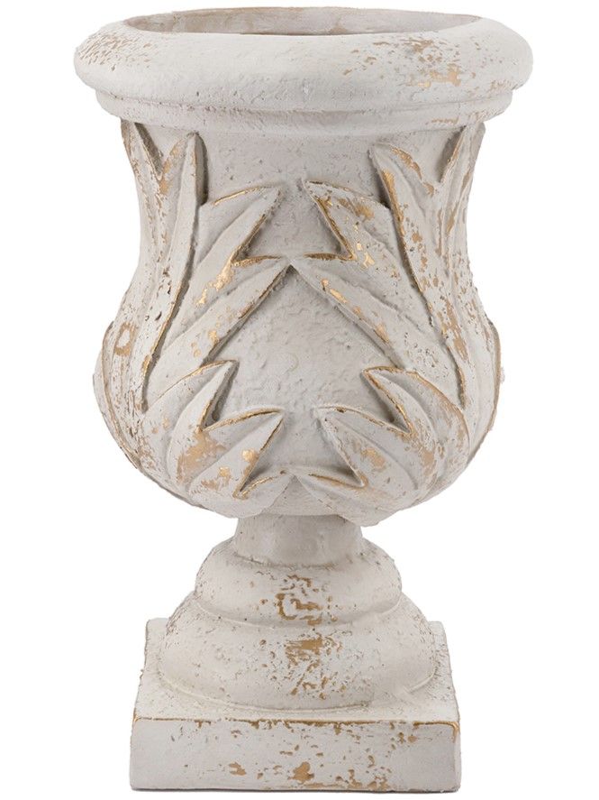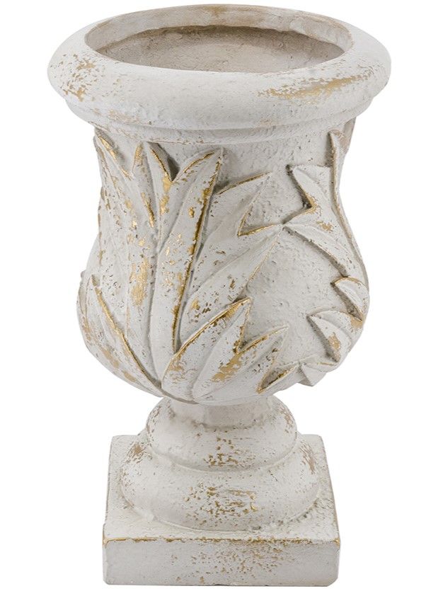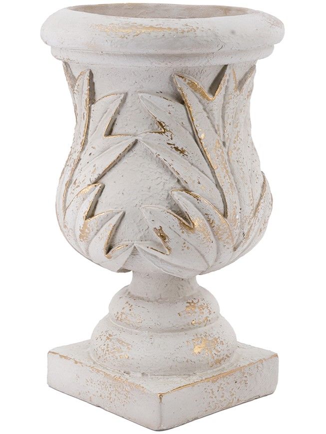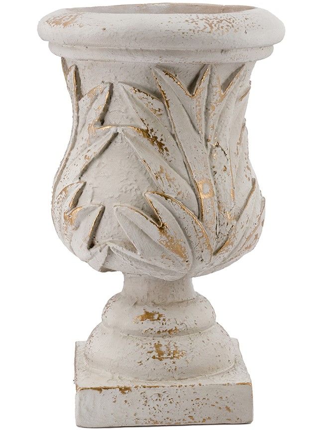 Благодаря своему античному стилю и состаренной отделке, настольная ваза придаст вневременного величия любому пространству. Это изделие прекрасно разместится среди растений в зеленом саду, а также может стать очаровательным акцентом в любом интерьере. Идеально подходит для комнат, балконов и других излюбленных мест, созданных для встреч на свежем воздухе. Поверхностные потертости и неровности с эффектом реставрации, трещины и сколы краски на изделии характеризуют индивидуальный подход к производству каждого предмета, создавая задуманный дизайнером античный образ ушедших эпох.