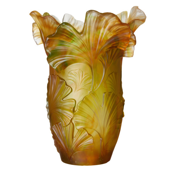 Ваза настольная Decor de table Гинкго 30 см, хрустальное тесто, янтарно-зеленая, п/к