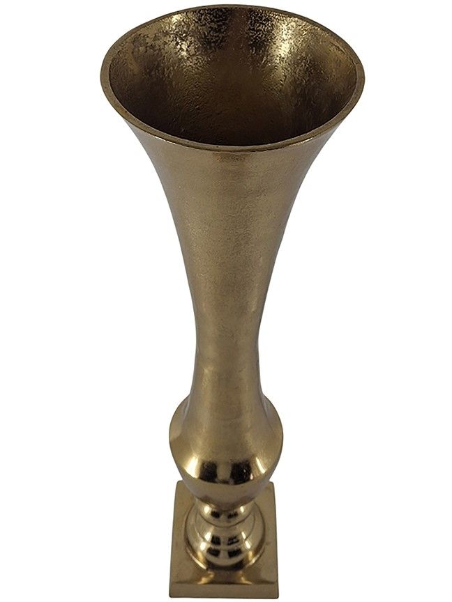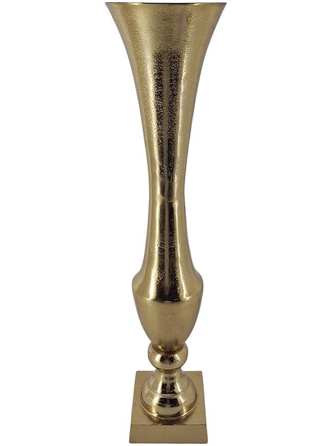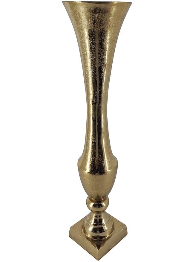 Изысканная ваза имеет высокую изящную форму, текстурную отделку на корпусе и прямоугольное основание, выполнена из высококачественного алюминия в цвете античного золота. Поставьте изделие отдельно, в сочетании с предметами из этой коллекции или в составе роскошного цветочного букета. Силуэт и роскошная цветовая гамма позволяют этой вазе гармонично вписываться в переходный, современный, эклектичный и дворцовый стили.