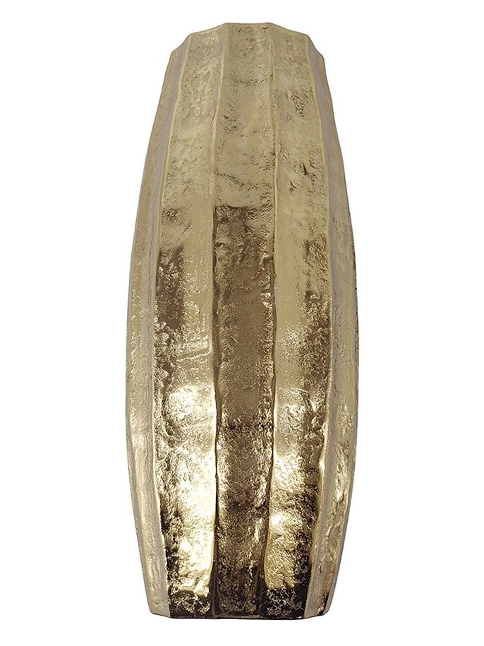 Декоративная ваза имеет классическую форму и ребристую отделку на корпусе, выполнена из высококачественного алюминия в цвете античного золота. Поставьте изделие отдельно, в сочетании с предметами из этой коллекции или в составе роскошного цветочного букета. Силуэт и роскошная цветовая гамма позволяют этой вазе гармонично вписываться в переходный, современный, эклектичный и дворцовый стили.