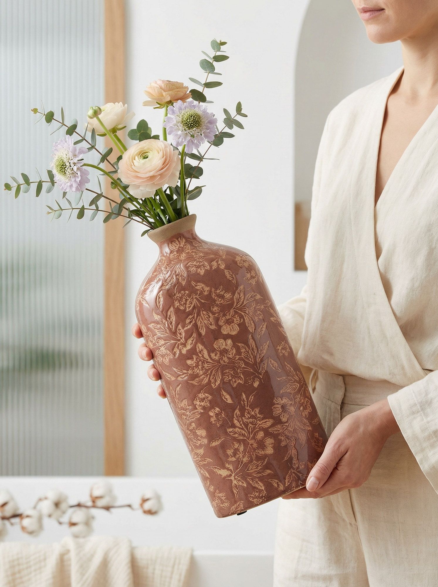 Керамическая ваза обладает классической формой с контрастной отделкой насыщенно бордового цвета, украшенного флористическим дизайном. Ваза выполнена в винтажном стиле и станет отличным дополнением к любому интерьеру, будь то ретро стиль, арт-деко или минимализм. Изделие станет не только функциональным предметом, но и изящным украшением вашего дома, умело дополняя общий стиль интерьера и создавая атмосферу уюта и гармонии.