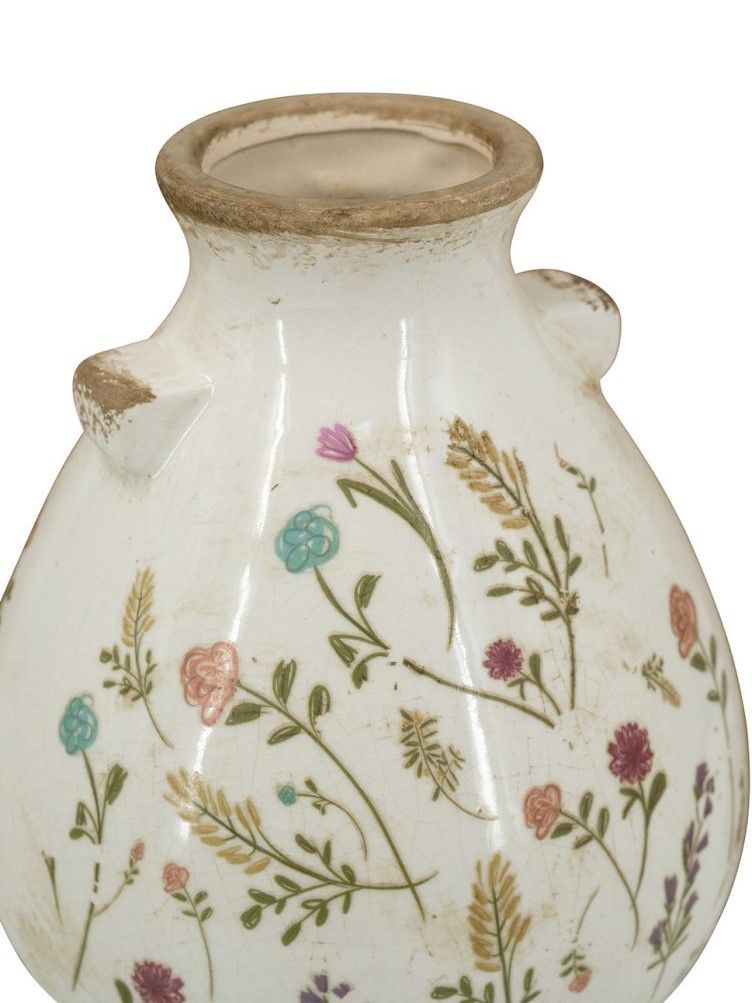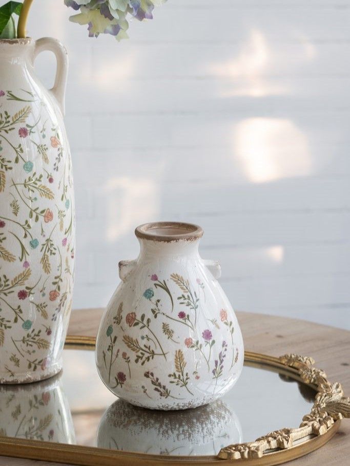 Акцентная ваза с высоким цилиндрическим силуэтом, состаренным ободком возле горлышка и изящным сочетанием цветочных мотивов, превращает классический дизайн в произведение искусства в природном стиле. Независимо от того, будет ли она стоять отдельно, в композиции или в сочетании с яркими цветами, ваза украсит любой стол или полку.