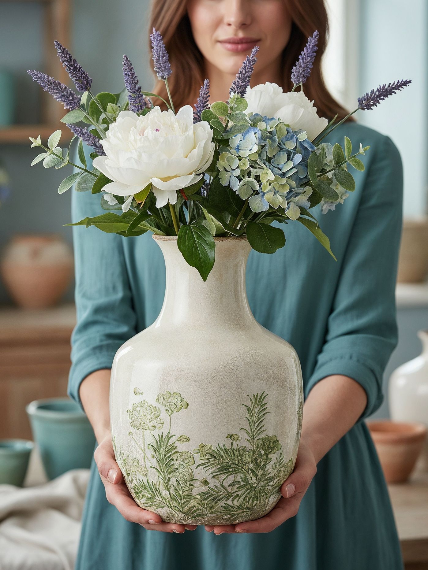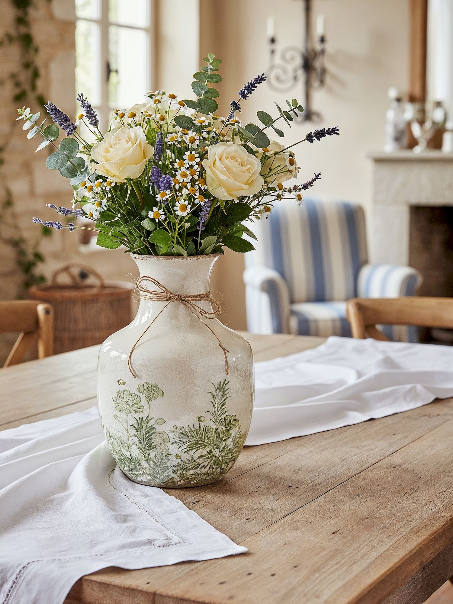Сочетая в себе лучшие мотивы классического стиля и утонченного природного оттенка, эта ваза выполнена из гладкой керамики, с цветочным изображением на белоснежной поверхности, подчеркнутой винтажным эффектом. Разместите изделие на вашем журнальном столике, каминной полке или создайте свой дизайн интерьера совместно с изделиями из этой коллекции.