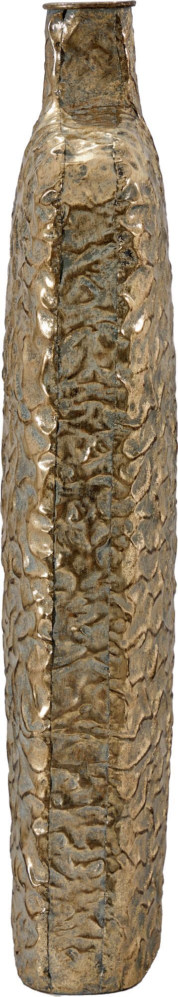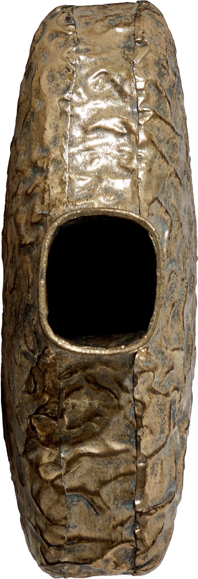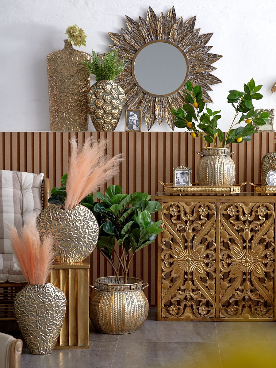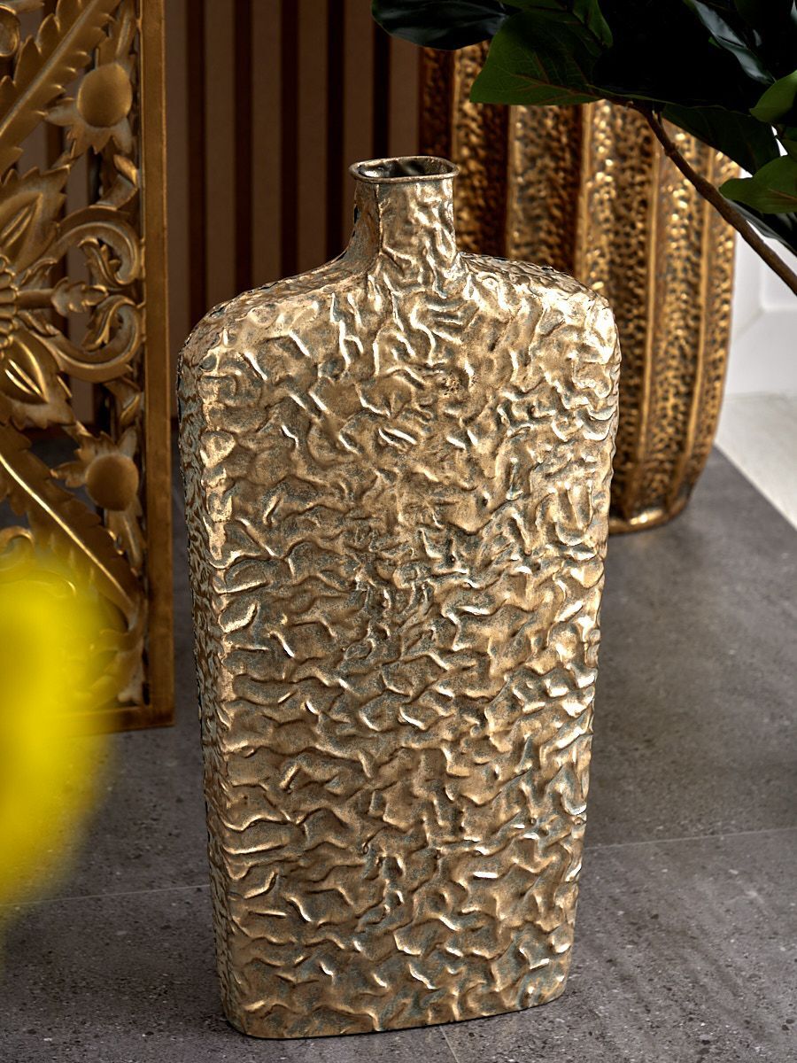 Металлическая ваза Гана, выполненная из металла в африканском стиле с узким горлышком, а также напылением золотистого оттенка с патиной, создана для размещения цветочных композиций из сухоцветов. Благодаря лаконичности формы подходит для любого интерьера, при этом являясь идеальным подарком. Эксклюзивные формы и фактуры навеяло богатство культуры Африки, множество художественных традиций и таинственная атмосфера, окутывающая неподражаемостью. Изделие имеет признаки искусственного состаривания, поверхность декорирована с эффектом патинирования, а наличие сварочных швов подчеркивают принадлежность к ручной работе.