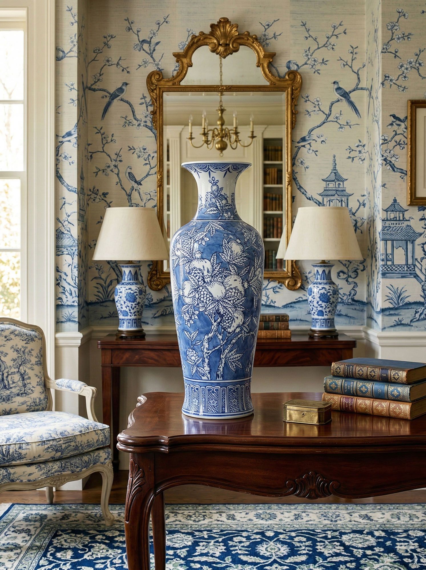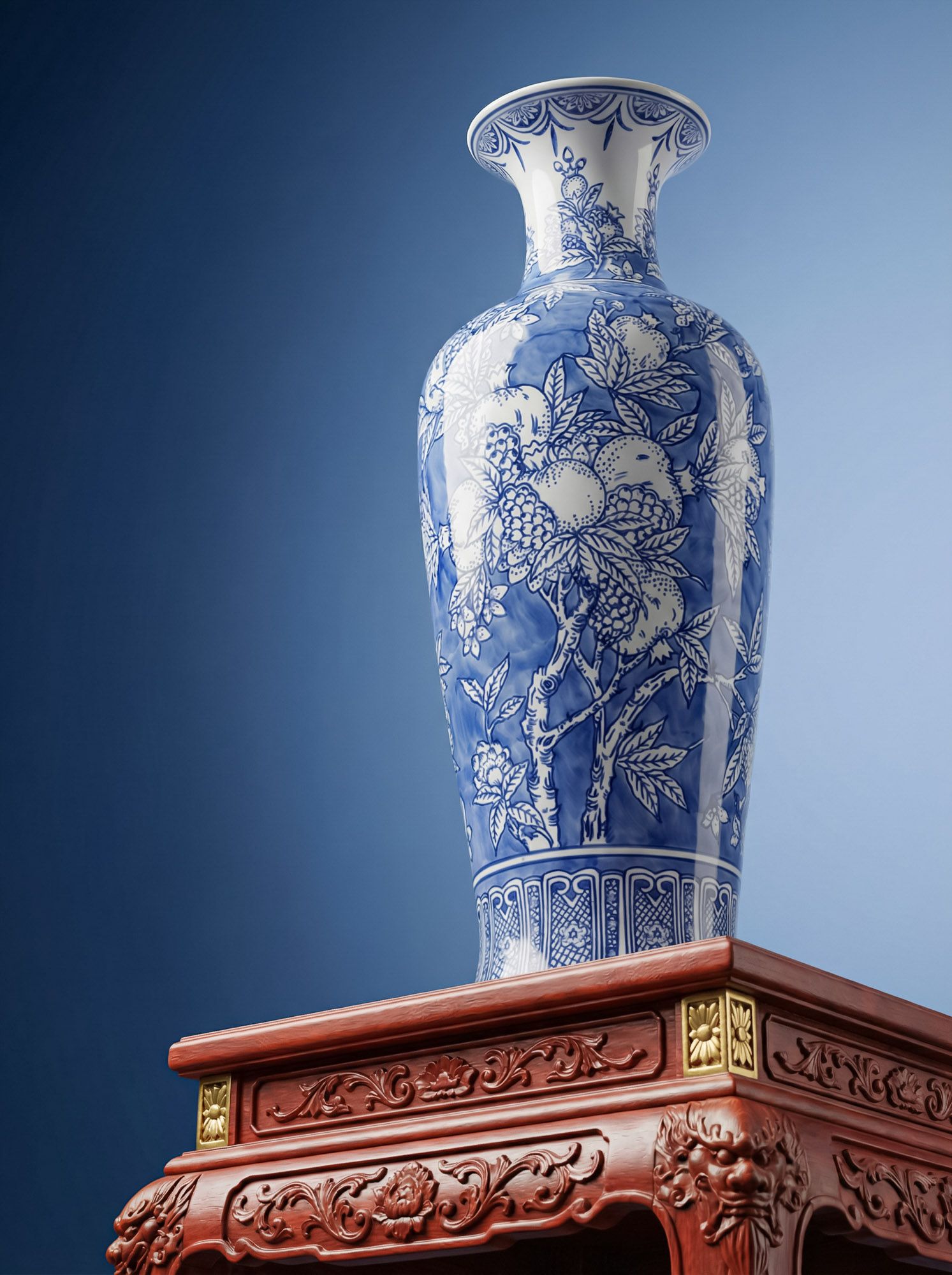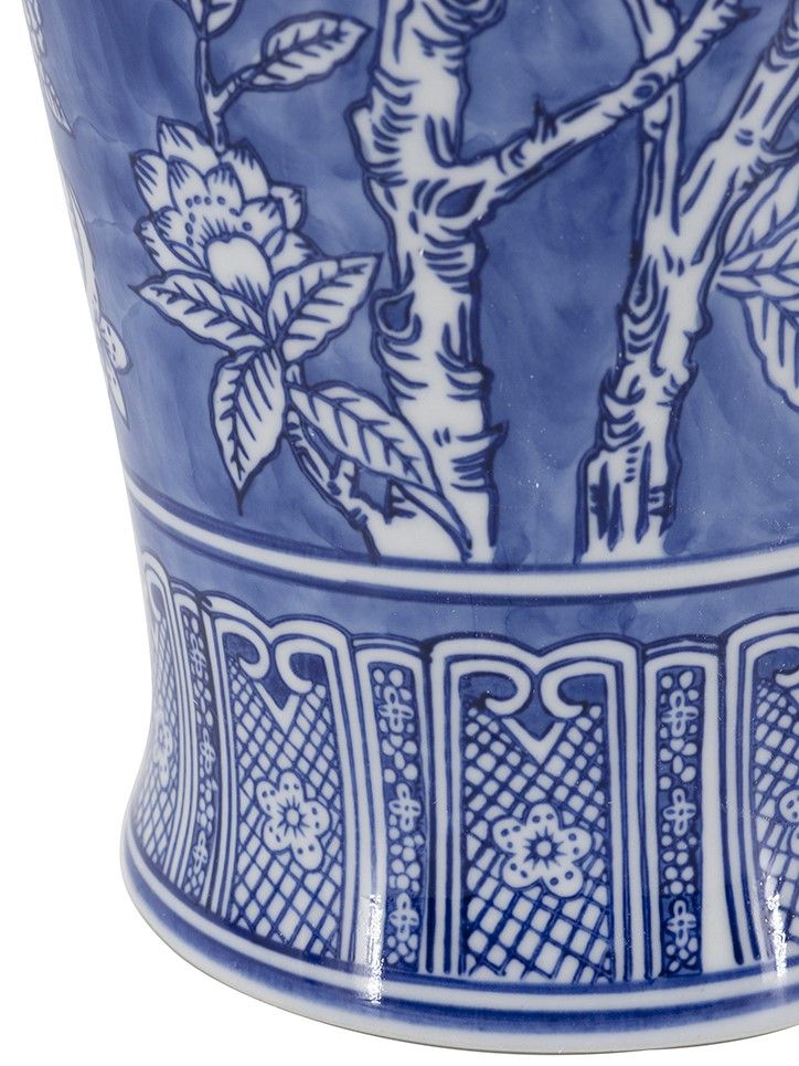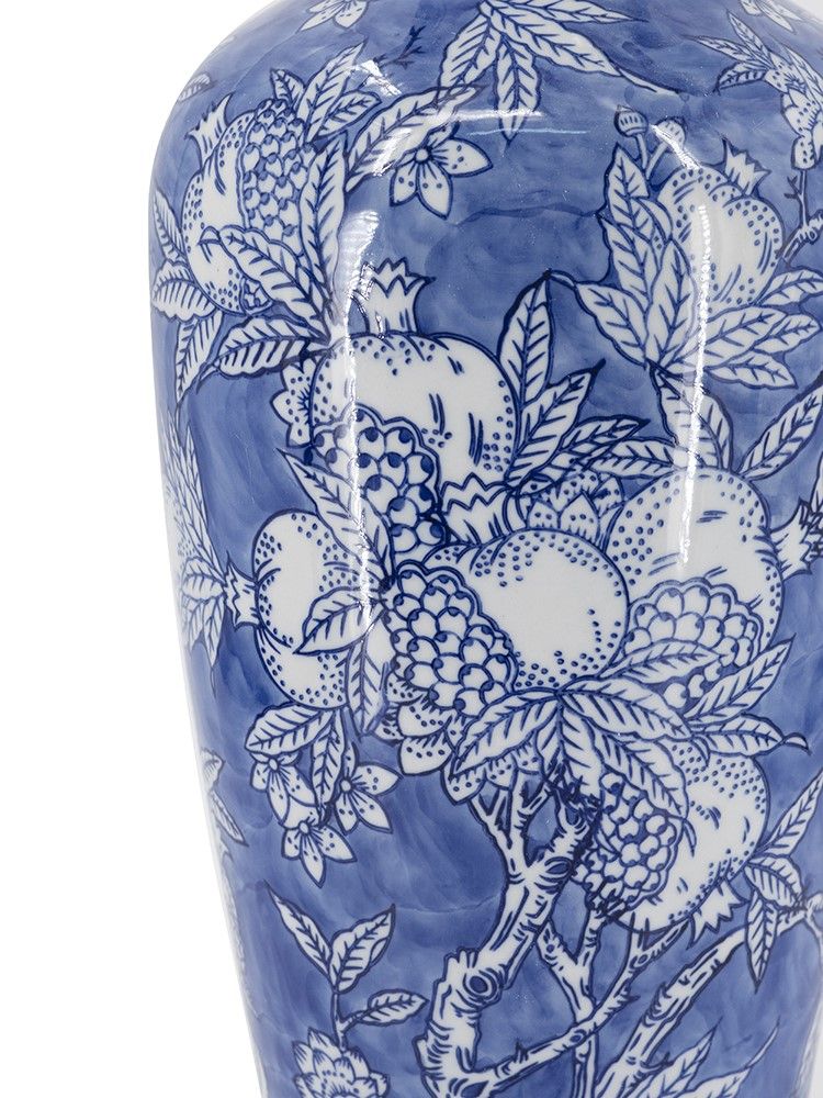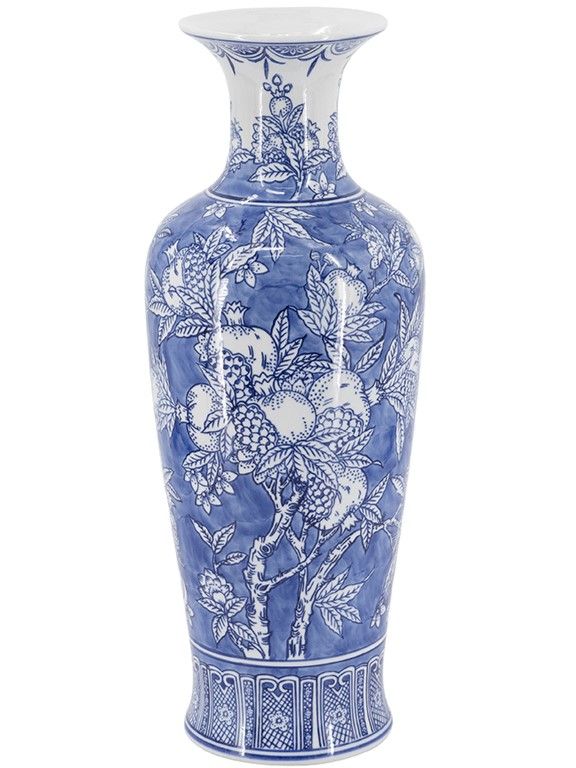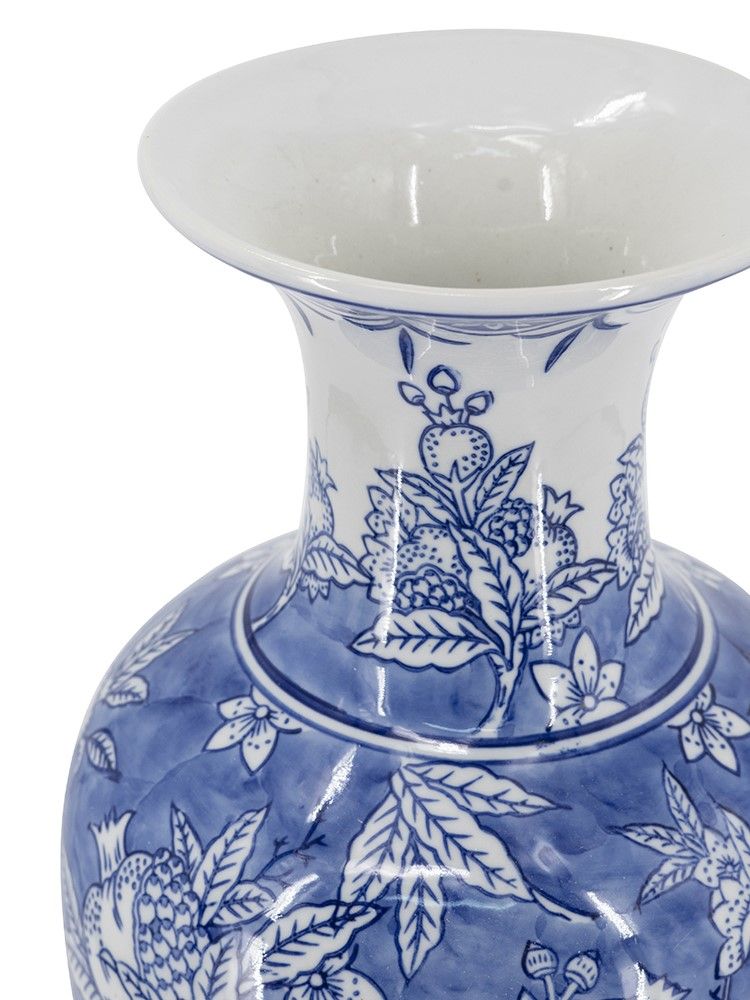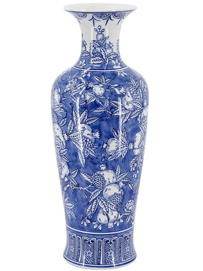 Фарфоровая ваза, вдохновленная элегантным дизайном времен династии Мин в Китае, имеет классический силуэт, узкое горлышко и изящные синие мотивы цветущего гранатового дерева, которые грациозно переплетаются на белоснежном фоне. Разместите изделие на вашем журнальном столике, каминной полке или создайте свой дизайн интерьера совместно с изделиями из этой коллекции. Неподвластная времени форма и изысканные детали позволяют вазе дополнять традиционный, богемный, эклектичный и переходный стили, органично вписываясь в любой интерьер.