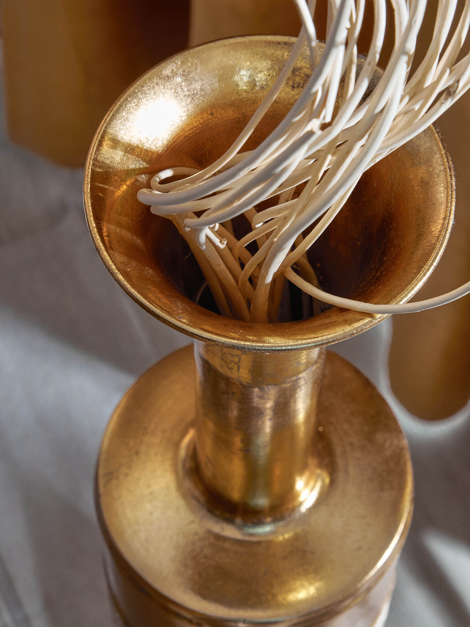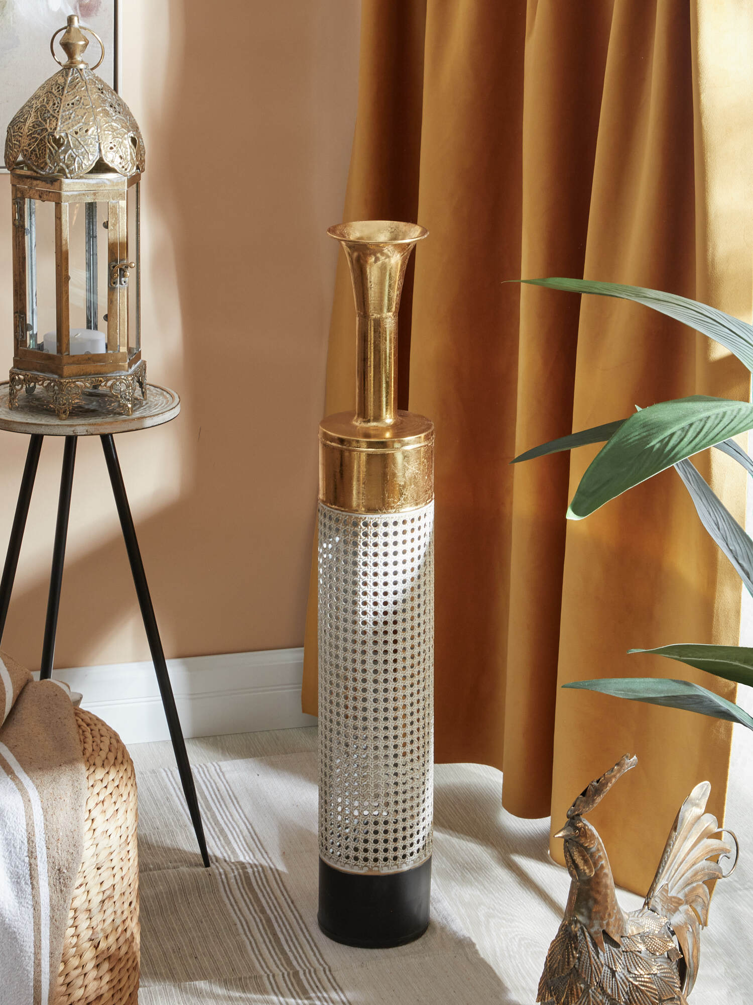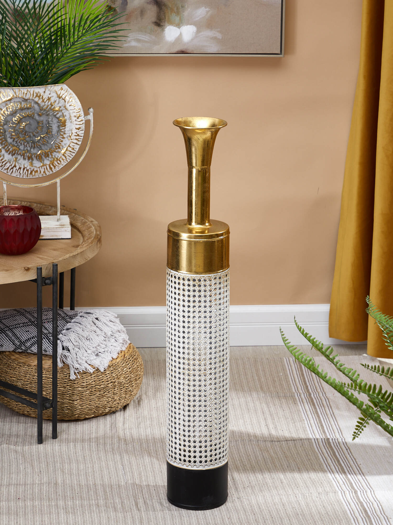 Подарите вашему интерьеру нотку роскоши с этой великолепной металлической вазой, созданной для цветочных композиций из сухоцветов. Изделие имеет признаки искусственного состаривания, наличие сварочных швов подчеркивают принадлежность к ручной работе. Уникальная форма цилиндра с сужающимся верхом придает ей изысканный вид. Это изделие украшено фактурной чеканкой и покрыто краской различных оттенков, что придаст вашему дому атмосферу элегантности, а патина на поверхности создаст дополнительный старинный эффект, который добавит ощущение времени и истории.