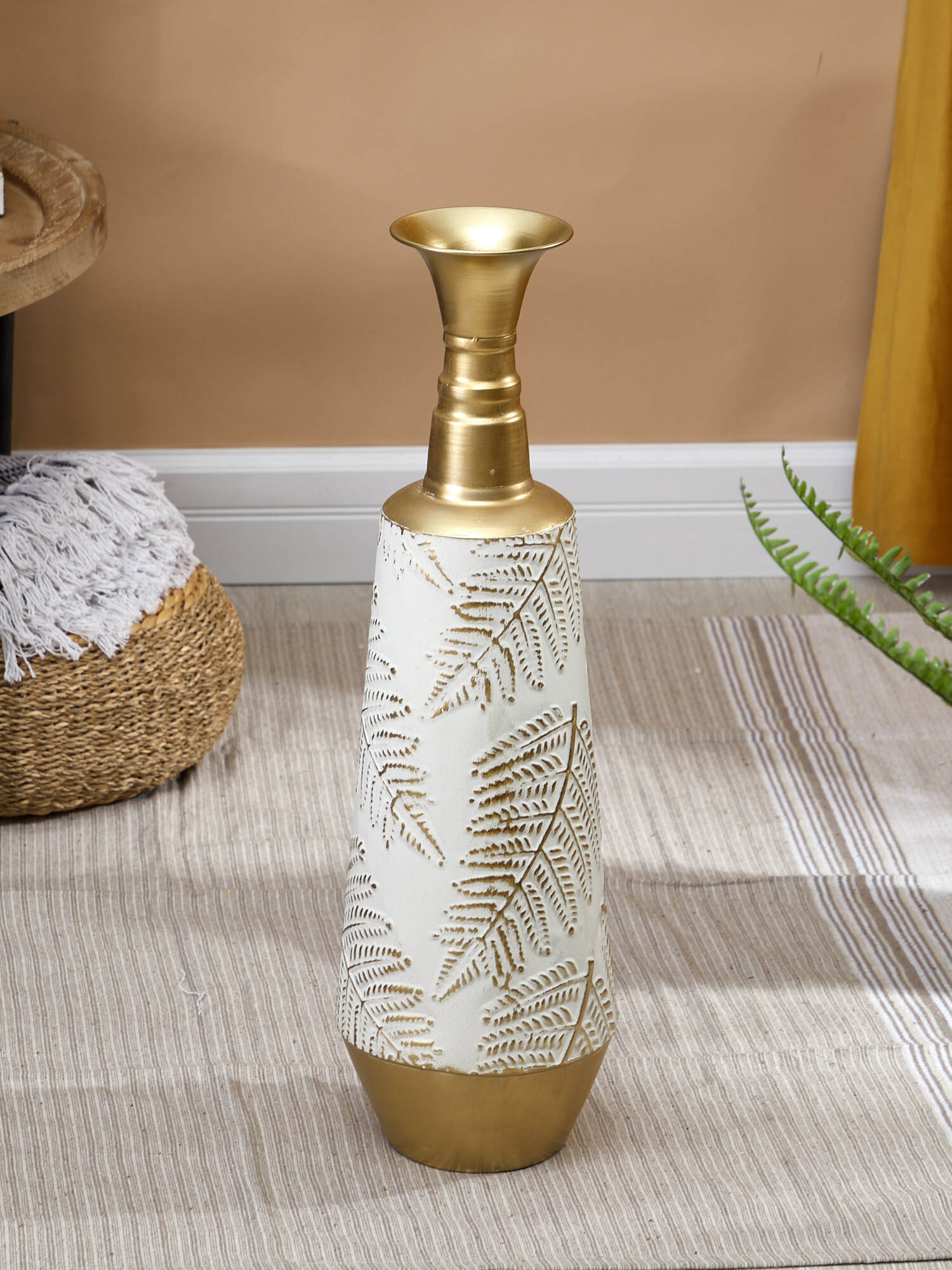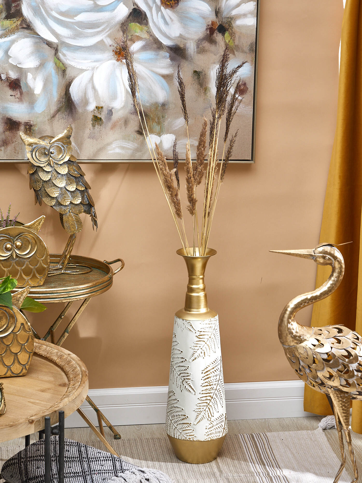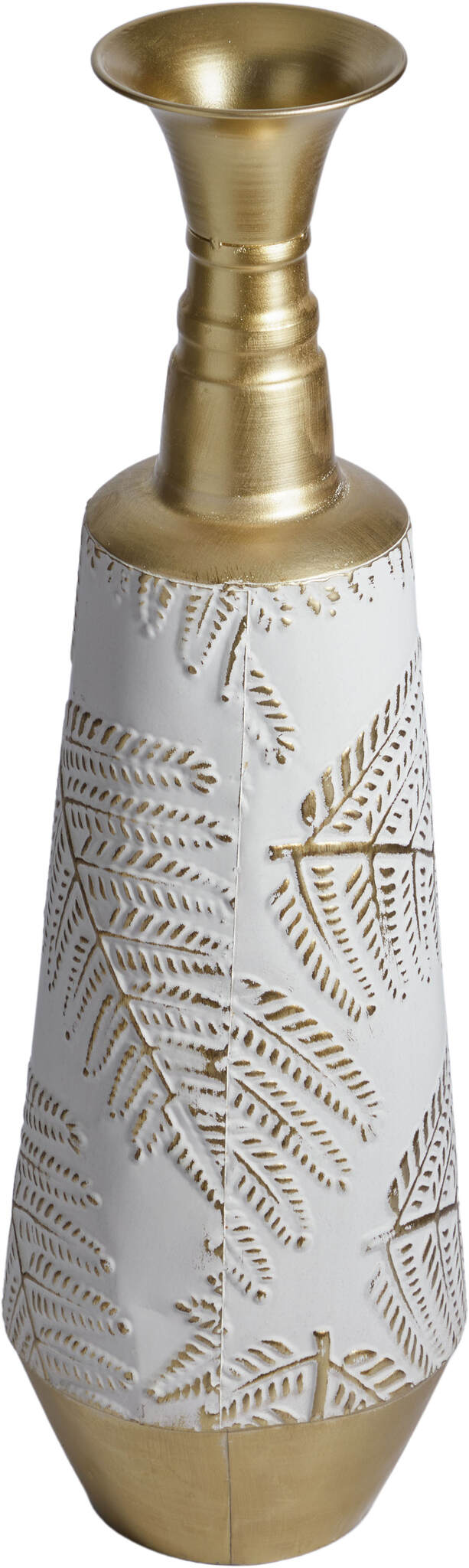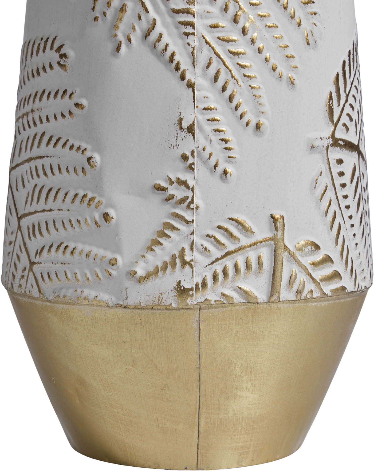 Подарите вашему интерьеру нотку роскоши с этой великолепной металлической вазой, созданной для цветочных композиций из сухоцветов. Изделие имеет признаки искусственного состаривания, наличие сварочных швов подчеркивают принадлежность к ручной работе. Уникальная форма цилиндра с сужающимся верхом придает ей изысканный вид. Это изделие украшено фактурным орнаментом и покрыто белой краской, что придаст вашему дому атмосферу элегантности, а патина на поверхности создаст дополнительный старинный эффект, который добавит ощущение времени и истории.