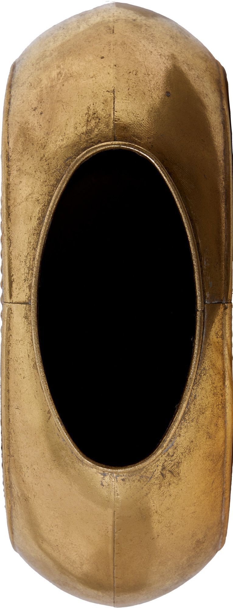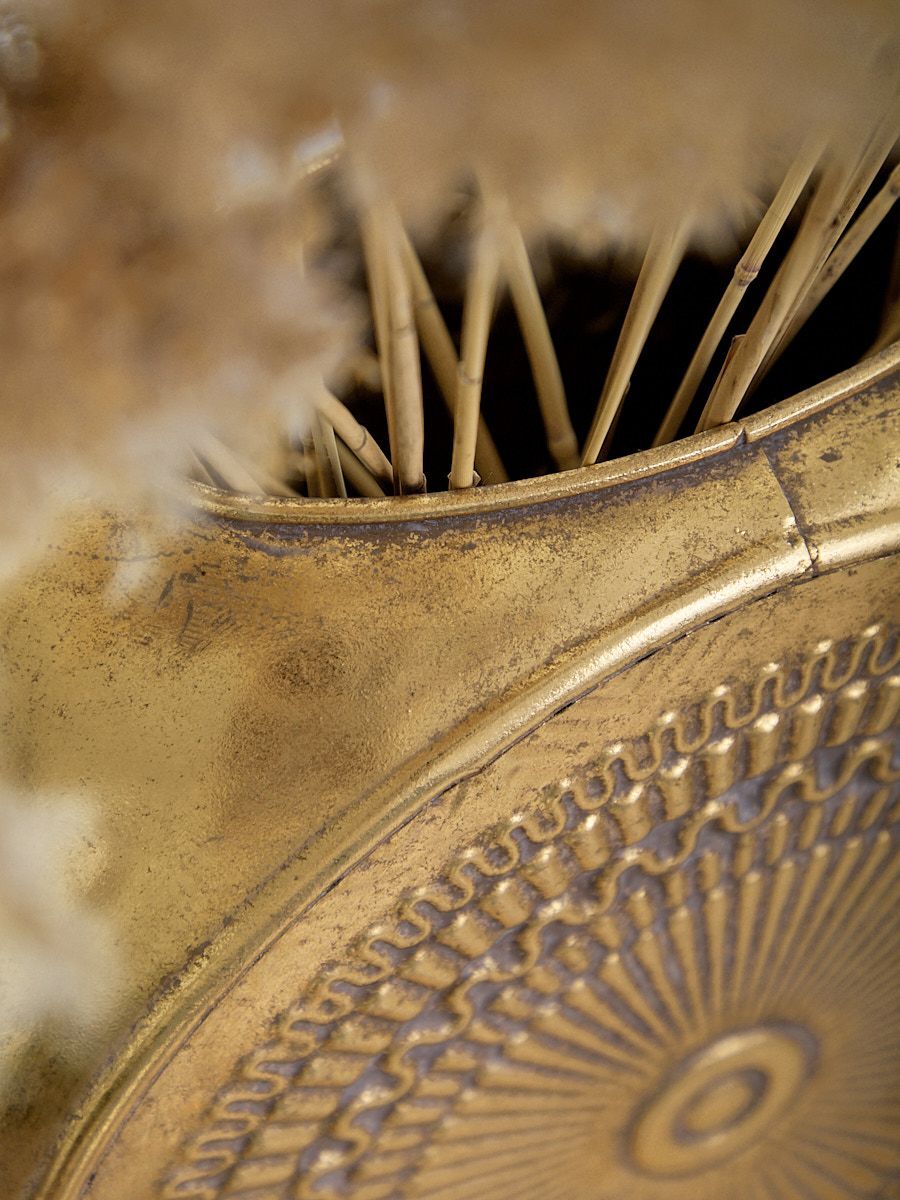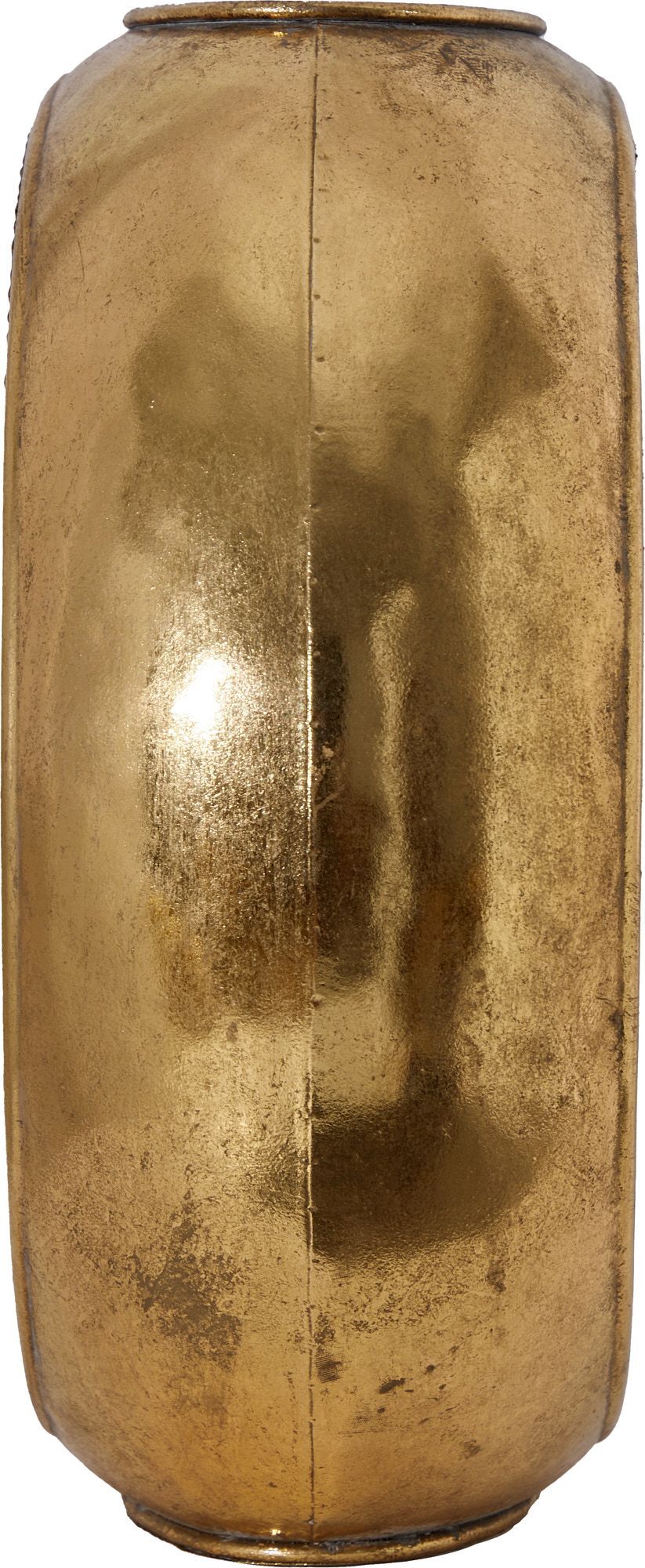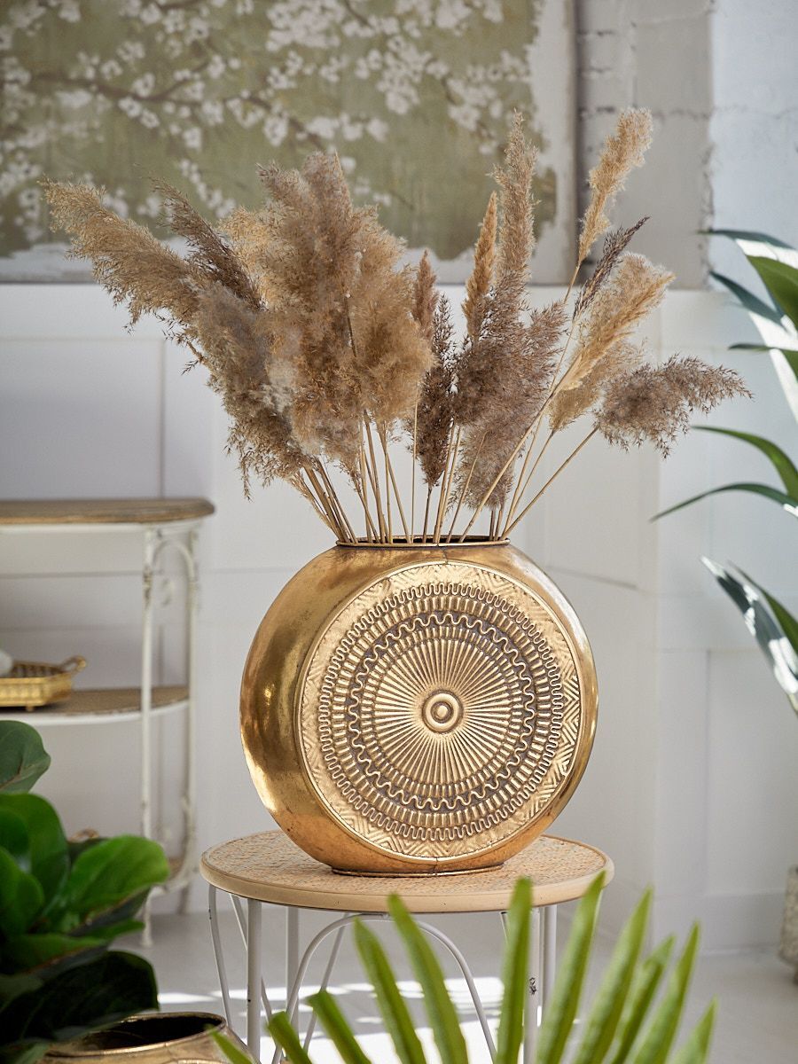 Металлическая ваза Кения с текстурным изображением в центре корпуса, выполненная из металла в африканском стиле, а также напылением золотистого оттенка с патиной, создана для сухоцветов и искусственных цветочных композиций. Благодаря лаконичности формы подходит для любого интерьера, при этом являясь идеальным подарком. Эксклюзивные формы и фактуры навеяло богатство культуры Африки, множество художественных традиций и таинственная атмосфера, окутывающая неподражаемостью. Изделие имеет признаки искусственного состаривания, поверхность декорирована с эффектом патинирования, а наличие сварочных швов подчеркивают принадлежность к ручной работе.