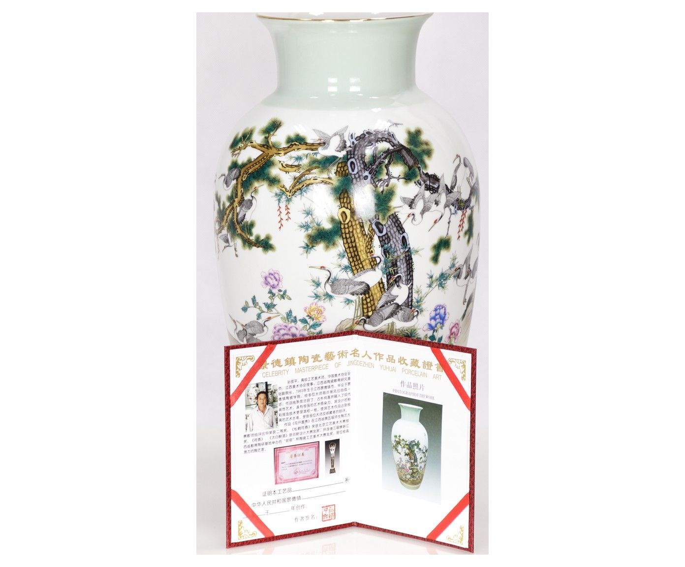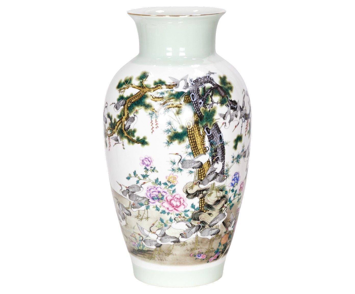 Фарфоровая ваза с ярким сюжетным рисунком. В комплекте паспорт с описанием вазы на китайском языке и фотографией вазы и художника, расписавшего её.